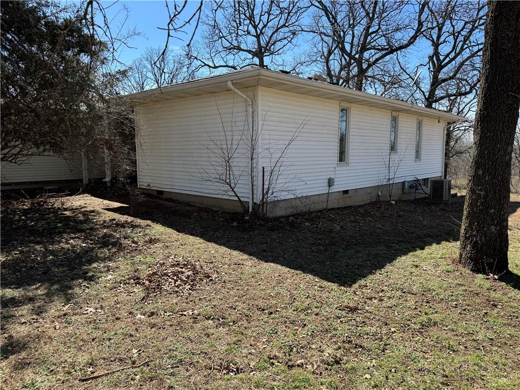 Price improvement! This house sits high and cannot be seen from the road! Close to city limits of El Dorado Springs on 12.3 acres is a raised ranch that is not a cookie cutter design!. This light-filled three bed, two bath home has large rooms and a small bedroom/office office. A large great room with wood burning fireplace and hardwood floors has custom bookshelves. The kitchen features beautiful butcher block counter tops and a farmhouse sink. Appliances staying with the house are the refrigerator, electric kitchen stove and dishwasher. Two car attached garage, with a one car entrance to the unfinished basement. Pole barn and good barb wire fencing and gates, the 50/50 open and timber acreage could be used for livestock or recreation. Natural gas and rural water utilities are on the property
