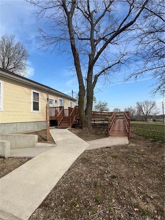 Located between Basehor and Lansing with over an acre of frontage on 7 Hwy. Wheelchair accessible throughout this lovely 3-bedroom, 3-bath home located just south of Lansing Ks and minutes from VA Medical Center in Leavenworth. Four-year-old home with full, unfinished walkout basement. Home has large 28' x 28' detached garage. Also, a cute she-shed with loft in fenced back yard of almost a full acre. New wheelchair ramp to front door and three beautiful decks with one just off the master bedroom. Home has 10 ft ceilings throughout. Gas fireplace in extra-large 36' x 21' great room which could conveniently be used as second living area with private entrance and beautiful back deck. All doors throughout the home are wheelchair accessible 36". Lovely home waiting for your personal touch.