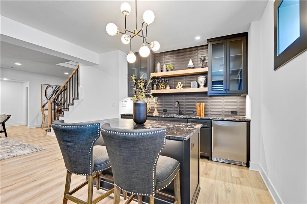 The Willow II Model by JFE Homes –MODEL HOME NOT FOR SALE!! A TRUE SHOW STOPPER! From the moment you arrive, The Willow II captivates with its stunning curb appeal—a sleek double glass front door and modern garage door with full tinted glass panels. Inside, soaring 10’ ceilings on the main level, 8' doors, walls of windows, and a vaulted great room with striking beams create a breathtaking first impression. A large sliding glass door seamlessly extends your living space to the covered patio with a stunning stone fireplace—perfect for relaxing or entertaining year-round. The chef’s kitchen is a dream, featuring custom cabinetry, an oversized island, quartz countertops, a butler’s pantry, and premium stainless steel appliances—blending function and style effortlessly. The primary suite is a private retreat with a decorative wood accent wall, vaulted ceiling, and spa-like ensuite. Indulge in the free-standing soaking tub, walk-in shower, and oversized closet that conveniently connects to the laundry room. Downstairs, the lower level is an entertainer’s dream! A spacious media area, a wet bar with space for a full-size fridge and microwave, plus two additional bedrooms and a full bath make this space ideal for hosting. Don't forget about the stunning wine wall enclosed with glass—a true showpiece! The full-size window well allows an abundance of natural light, creating a bright and inviting lower level. The backyard is finished off with a retaining wall and additional trees ( Price does not reflect those items). Other items not in price - Epoxy garage floor and painted floor in unfinished basement. Located in Canyon Creek Forest, a maintenance-provided community, you’ll enjoy a carefree lifestyle—no more mowing, weeding, edging, or snow removal—just more time for what truly matters. This is a model home ** not for sale ***