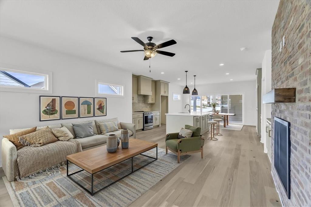 Welcome to your brand new dream home in the charming Shoal Creek Valley, The Village! This stunning, never-lived-in ranch-style residence offers the ease of main-level living with laundry conveniently located on the same floor. Imagine relaxing on your covered front porch or enjoying outdoor gatherings on the covered patio. Step inside to discover an inviting open floor plan, perfect for modern living and entertaining, anchored by a beautiful brick fireplace in the living room. The main level also features a luxurious master suite and a comfortable second bedroom. Venture downstairs to find two additional bedrooms, a full bathroom, and a spacious recreation room, offering plenty of space for family and guests. Living in this postcard-perfect neighborhood, with its lovely tree-lined streets, also grants you access to incredible amenities right across the street, including a swimming pool and waterpark complete with a lazy river and thrilling water slides! For outdoor enthusiasts, Hodge Park and the renowned Shoal Creek golf courses are just a stone's throw away, along with scenic walking trails. Plus, you'll appreciate the convenience of nearby great shopping and grocery stores. Don't miss this incredible opportunity to own a brand-new home in a truly exceptional location!