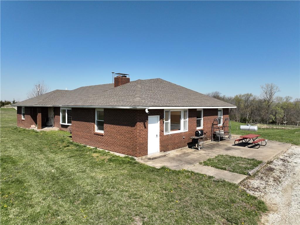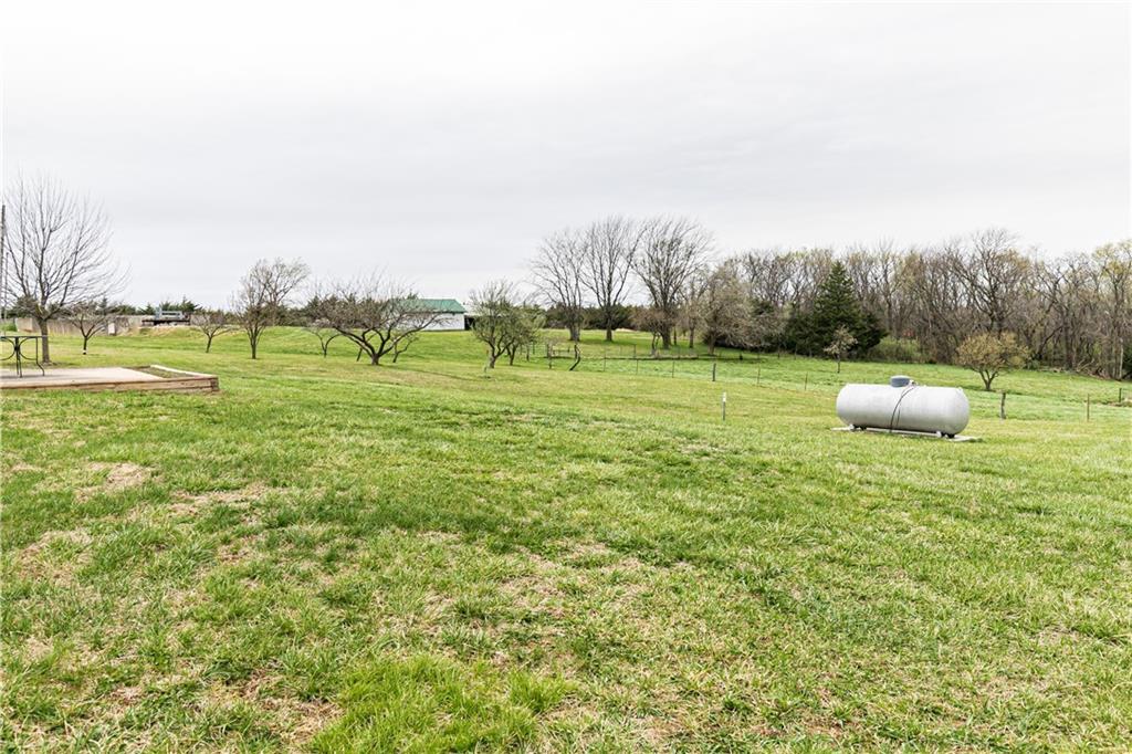 NEW PRICE! MOTIVATED SELLER! ALL BRICK TRUE RANCH ON 30.21 ACRES LOCATED BETWEEN McLouth and Oskaloosa Kansas. Oskaloosa Schools. Fenced on approximately 25 acres, so ready for your horses/cattle/or special animals, several water hydrants located on land. Setting on an asphalt road. Some fencing may need repairs. Home was set up with an in-law quarters, on main level with additional kitchen, living room, bedroom, and bath. Two heat pumps operate areas separately. WBFP's with blowers are fed into the ductwork. Additional basement area to finish. Roof is 4 years old. Home need some updating but built like a fortress. Basement has approximately 530' finished square feet but has more to finish. 4 full baths in home. Anderson window are 8 years old, new hot water tank stay but not hooked up. New gutter and downspouts. Property boast 3 outbuildings: 30x23 Metal Construction Garage with 18 foot door plus rear garage door and concrete floor, 30x48 Work Shop with 3 phase wiring, all insulated, full bath and office plus shelving stay, wiring is ran in conduit under the floor. Third storage barn with concrete floor and lean to for pets.