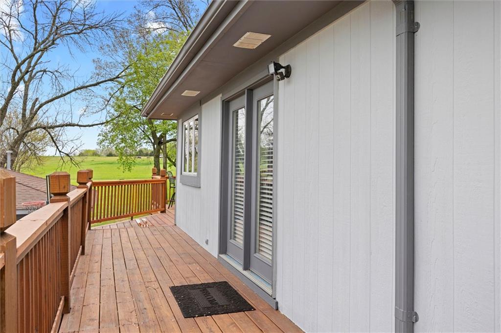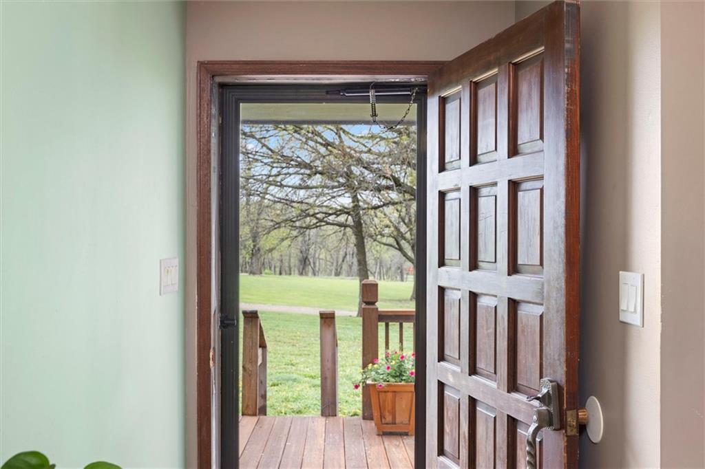 Welcome to Meadowlark Hill, a charming 3-bed, 3-bath ranch home set on 22 scenic acres just west of Lawrence, Kansas. This peaceful retreat offers the perfect balance of rural tranquility and convenient access to Lawrence and Topeka. The home features a traditional layout with a cozy dining area, well-equipped kitchen with pantry, and spacious bedrooms. The primary suite includes a private bath, and the unfinished walkout basement provides endless potential—whether you envision a guest suite, office, or extra living space. Step outside to enjoy panoramic views from the wrap-around deck overlooking the private, fully-stocked pond, mature trees, and rolling hills—ideal for morning coffee or evening relaxation under the stars.