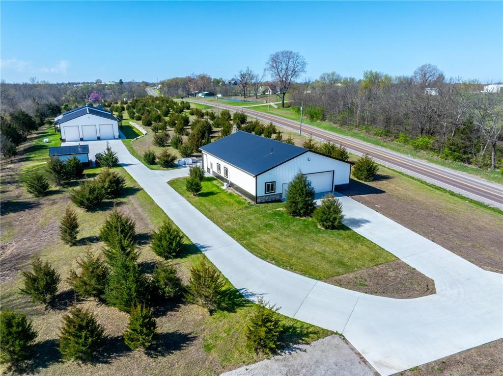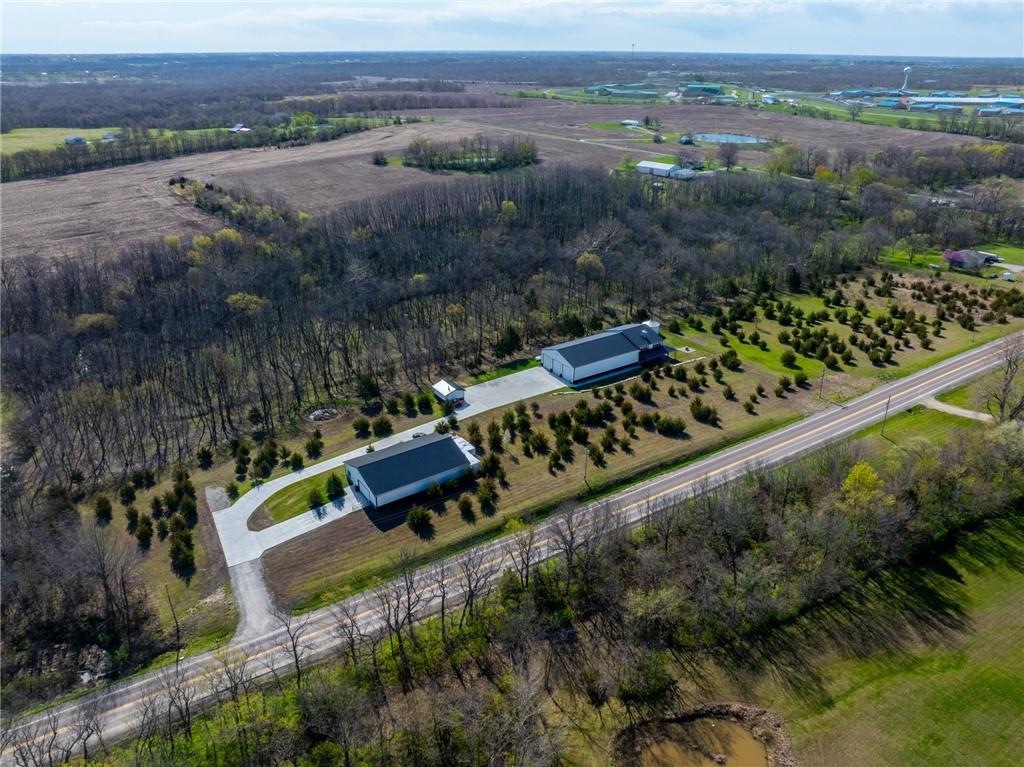Under Appraised Value! Awesome opportunity to experience unmatched sophistication just beyond the city limits with this one-of-a-kind custom-built estate. Nestled on 10 peaceful acres and boasting over 2,400 sq. ft. of refined living space, this property is not only a dream home, it’s an extraordinary opportunity to create a boutique wedding venue, exclusive corporate retreat, or unforgettable event center. Step inside and be greeted by soaring 18’ ceilings and a dramatic see-through stone fireplace that anchors the open-concept layout. Gleaming hardwood floors guide you through a stunning living space, centered around a gourmet kitchen with granite countertops, a large island, and a walk-in pantry, complete with a secure gun/safe room. Modern touches, like a shaker accent wall, elevate the style while maintaining warmth and charm. The main-level primary suite is a serene sanctuary with a walk-in tiled shower, while the upper level offers two additional bedrooms and a flexible loft/office space, perfect for guest quarters, event prep rooms, or an on-site bridal suite. Outdoors, relaxation and entertainment meet with a covered porch, a secluded hot tub surrounded by nature, and a unique outdoor silo that adds rustic charm to any gathering. Imagine wedding ceremonies with scenic backdrops, corporate events under the stars, or elegant garden parties in this serene setting. The attached heated garage spans over 4,000 sq. ft., ideal for staging, equipment storage, or expanding your vision. Plus, the climate-controlled commercial-size shop includes an office and full bathroom, ready for business operations or future venue infrastructure. A beautiful cement driveway leads to your private escape, just minutes from town and only 40 min, north of Liberty, MO. Whether you envision a luxurious personal estate, a destination event venue, or an income-generating retreat—this rare offering delivers it all. Let your imagination lead the way.. your next great adventure starts here.