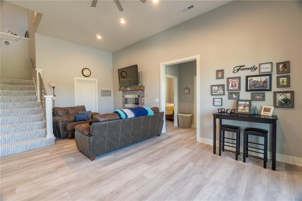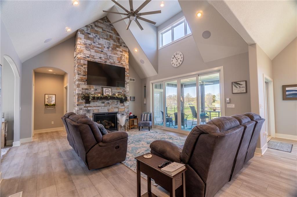 Motivated Seller! TURN-KEY Lakefront Luxury on Beautiful Lake Viking! Welcome to this newer construction, lakefront retreat. This stunning 4-bedroom, 3.5-bathroom home was thoughtfully designed for comfort, entertainment, and soaking in the water views. Step into the grand great room where soaring vaulted ceilings, a floor-to-ceiling stone fireplace, and windows framing the sparkling lake beyond. The open-concept layout flows effortlessly into a modern kitchen featuring a large quartz island, stylish finishes, and all the space you need for gathering with family and friends. The main-level primary suite is a private escape with dual vanities, a spacious walk-in closet, and a luxurious dual-headed custom shower. Downstairs, the walkout lower level boasts a cozy family room, three additional bedrooms, and a wet bar, perfect for hosting weekend getaways. Outside, enjoy your private dock complete with a 2-well boat slip, swim platform, 2018 Yamaha Jet Ski, and 2019 boat, all included! The exterior showcases Hardie Board siding and elegant stone retaining walls that blend durability with timeless curb appeal. Whether you're entertaining, relaxing, or playing on the water, this home is ready for you! Don’t miss your chance to own a piece of paradise at Lake Viking!