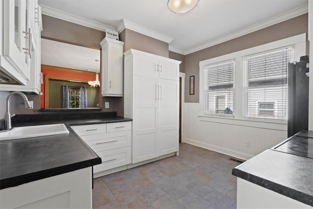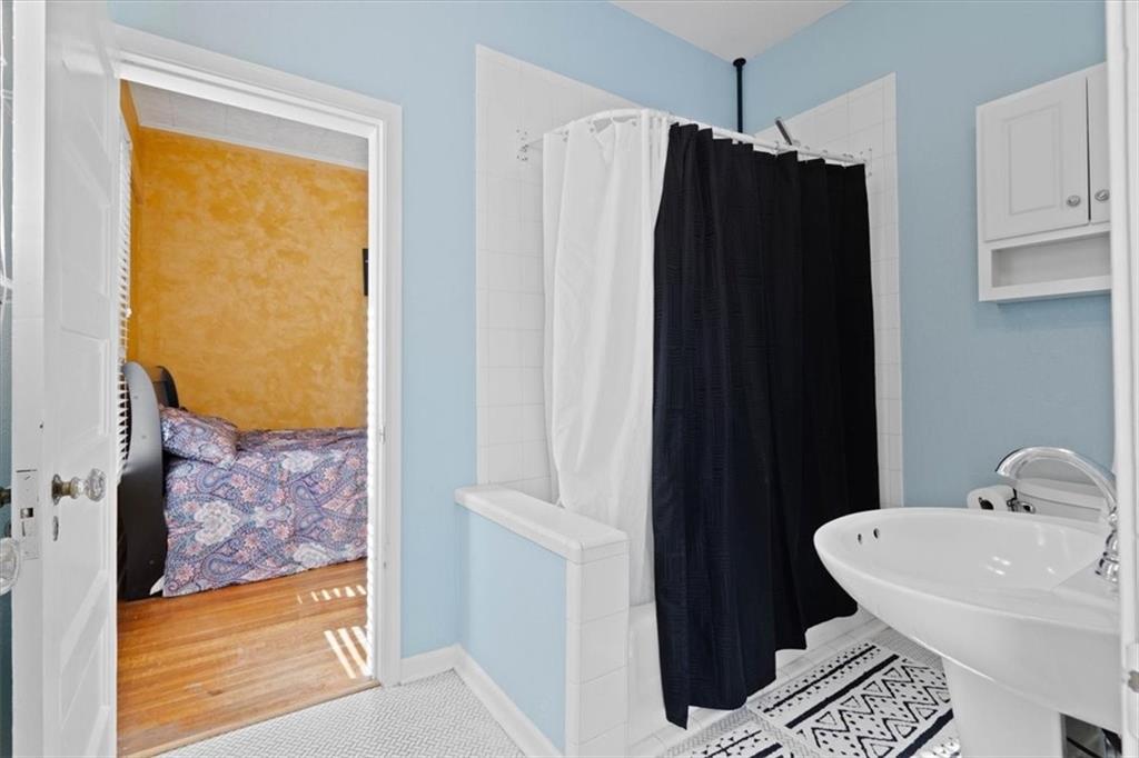 This wonderful home really stands out with its tremendous character and unique charm! Inside, you'll find beautiful tall ceilings and spacious bedrooms. There's also a fantastic bonus bedroom and a full bathroom located upstairs, offering great flexibility. The kitchen is lovely, featuring updated see-through cabinets. The location is also very convenient. Adding to its appeal, the home includes energy-saving solar panels and a private backyard, perfect for relaxing. It also has a detached garage for your convenience. The property is further enhanced by mature trees and a beautiful lawn.
