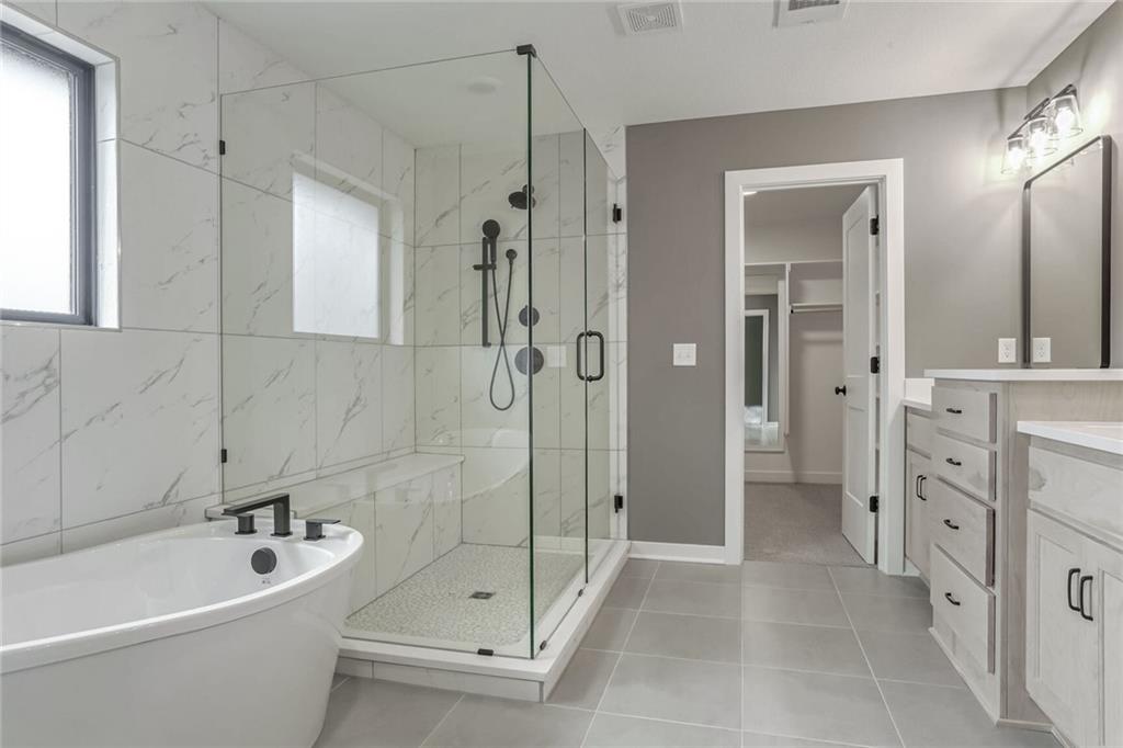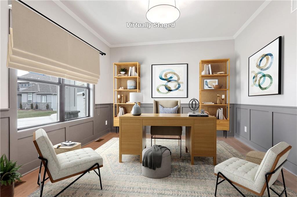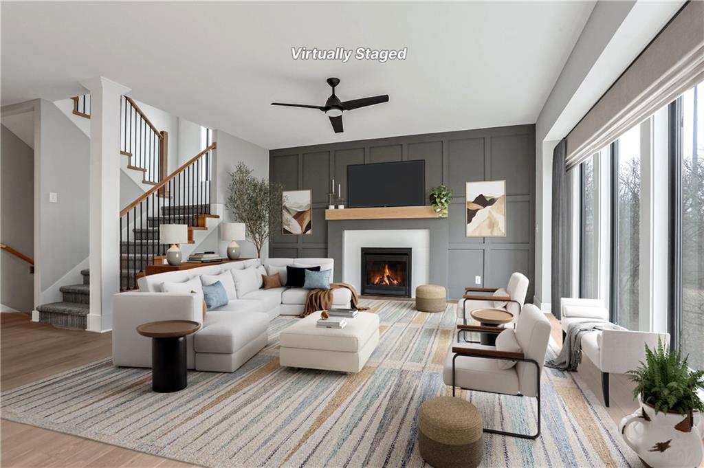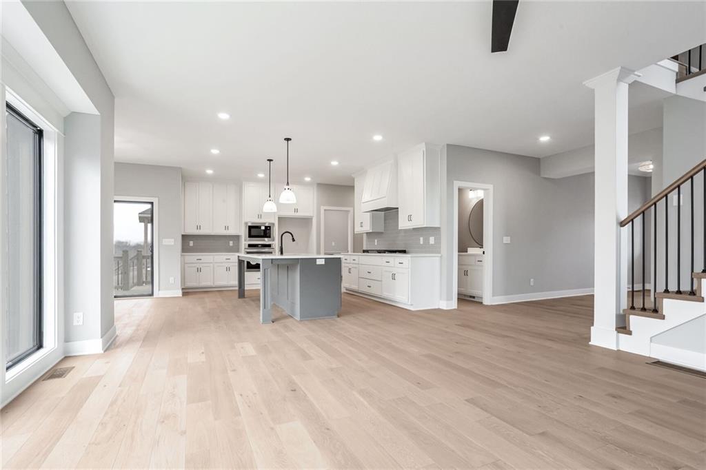 Stunning MOVE IN READY new construction! This beautifully crafted Manchester 2-story by Hearthside Homes blends luxury, comfort, and thoughtful upgrades throughout. Enjoy hardwood floors across the main level and a chef’s kitchen featuring quartz countertops, a built-in oven, gas cooktop with wood hood, and a prep kitchen with sink for added convenience. A spacious island with pendant lighting and furniture-style legs anchors the open layout that flows into the great room showcasing a fireplace with custom trim wall detail—perfect for entertaining or cozy evenings. A flex room with wainscoting and crown molding provides an ideal office or playroom. Upstairs, the primary suite is a relaxing retreat with crown molding, freestanding tub, frameless shower glass, and elegant tile flooring and walls. Enjoy outdoor living on the covered deck backing to trees. Additional features include 8' garage doors, full walkout basement, yard irrigation, and tile floors in all baths and laundry. Designer touches include upgraded stair carpet with wood end caps and finished basement stairs with mid-landing. Every Hearthside home includes a 12-month builder warranty and exceeds industry standards with third-party inspections, verified sewer line scope, and professional HVAC duct cleaning—ensuring your home is delivered in top-tier condition. Located in unincorporated Platte County with Park Hill Schools, this community offers a pool, clubhouse, and walking trails.