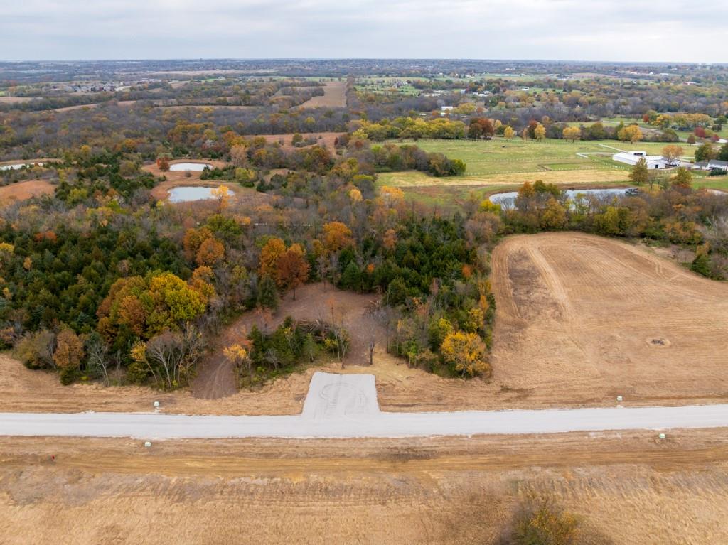 Located north of Peculiar, just a stone’s throw from the Ray-Pec High School and South Middle School campuses, is the brand new Timber Ridge Farms subdivision. Ranging from 4.44 to 5.16 acres, there are 14 diverse lots to choose from. The ground is a mix of open and wooded land, with beautiful scenery, a country feel, and wildlife throughout. The recently chip-&-sealed private Timber Ridge Dr runs the high ground down the middle of the subdivision, and ends in a cul-de-sac. Power and water utilities are installed, and hookups available. The gently sloping topography offers multiple options for floorplans, and makes each acreage ideal for a reverse ranch/walkout; and with a centralized east/west road configuration, most of the lots present good southern exposure. With an entrance from S School Rd, near E 203rd St, it is just 1.3 miles from I-49, providing a convenient commute to the metro. At 5.05 acres, Lot 4 is mostly wooded, with some open ground, and has a central valley running north and south. It has trails through the woods. A beautiful homesite has recently been cleared in the woods.