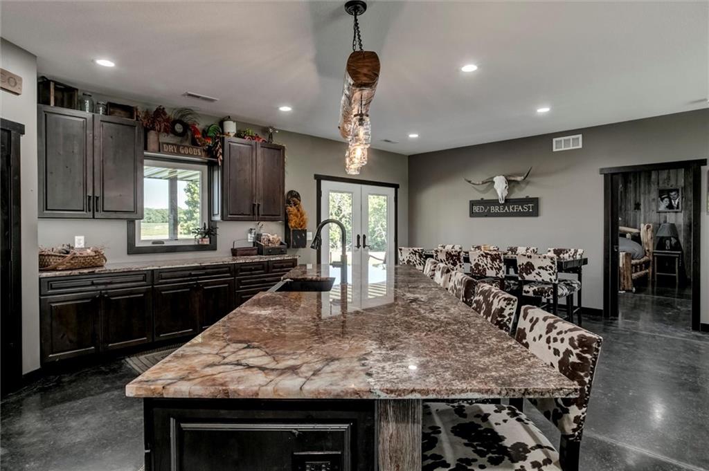Wow! If you’ve been looking for a property that has it all look no further!! 125+/- acres with a nearly new 2400 square foot barndominium, an oversized attached 2 car garage, a huge shop, barn and two ponds! One pond is almost 2 acres! The land has about 70 acres of big, hardwood timber, a creek, approximately 30 acres of tillable land, currently planted to corn and the balance is meadows and grassy water ways. The home, which has rural water and a septic system, has a huge great room with views of the 2-acre pond, a large master suite, 2 additional, oversized bedrooms. All of the bedrooms have large walk-in closets. There is also a private office for those that work from home! You’ll be able to hunt the big Kansas whitetail buck of a lifetime and wild turkeys and you won’t have far to walk to catch your fill of bass, crappie and channel cats all on your own property! The views of the ponds and sunsets from the back patio are simply amazing and do not disappoint! The home is all electric and is pre plumbed for floor heat if one so desires to have it installed. The 40’ x 64’ shop has tall overhead doors for your equipment or camper. It has a concrete floor a wood stove. There is also a nice metal barn and a lean to shed. Both, the shop and barn have water and electricity. The property is located only ¼ mile of paved Old Highway 50, southwest of Ottawa and will make your perfect dream home or weekend getaway!