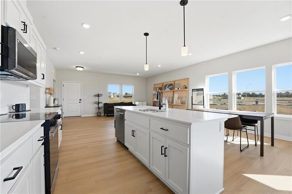 **HOME IS MOVE IN READY**Summit's Heather home plan with Series 2, Design Package A is the perfect ranch plan, greeted immediately by a large great room featuring an open-concept kitchen, dining, and living room space. The primary bedroom is located on the main level, at the back of the home, with a private bathroom featuring a stunning walk-in shower and a large walk-in closet. The main floor also features the 3rd and 4th bedrooms, which are conveniently located next to the full bath and laundry room. Looking for additional space? Consider finishing the lower level to include a rec room, another bedroom, and an extra bathroom, enhancing the versatility and functionality of your home. Please contact Noelle Stephens 913-808-2100 with any questions you may have.