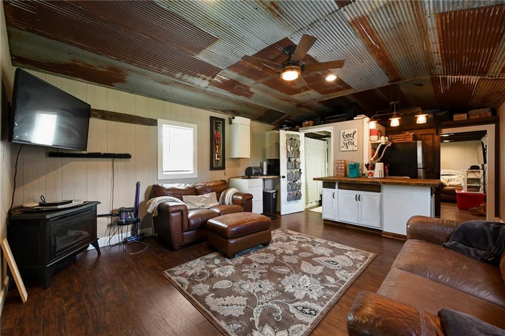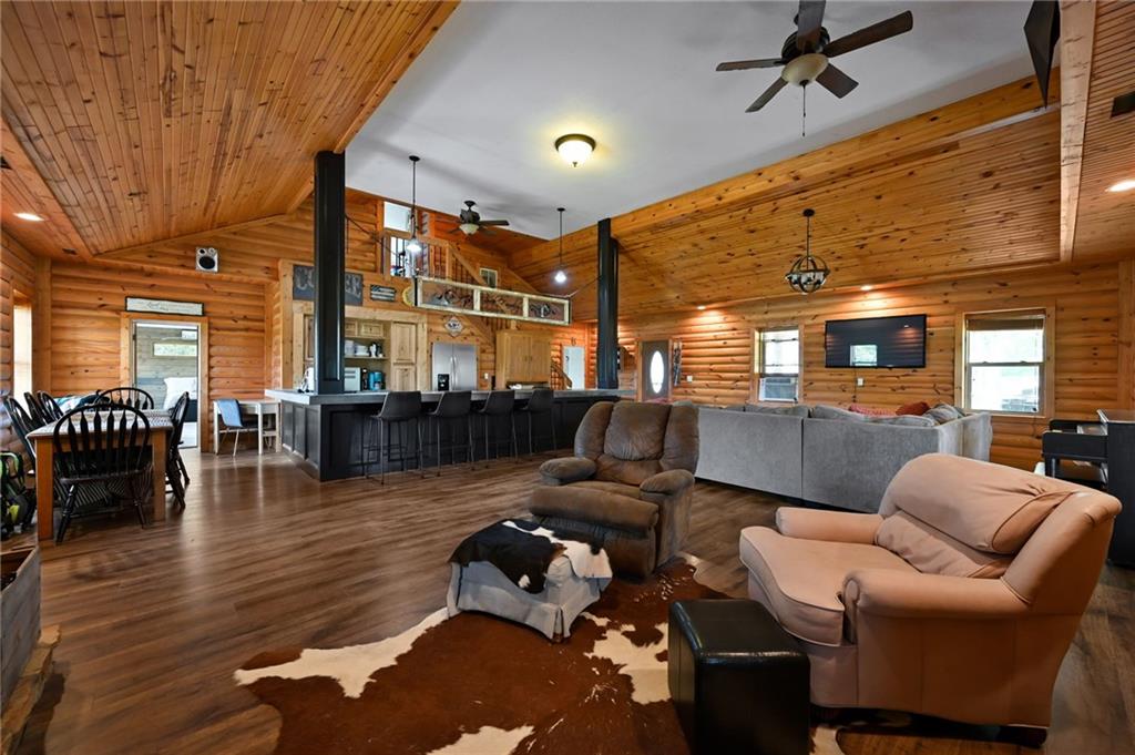 Welcome to Top of the World! Featuring 4 Seperate Living Spaces and Venue on this Sprawling 50+ acre estate nestled ontop of a bluff overlooking the arm of the Osage River and the town of Osceola. The event space offers a multitude of options from weddings, prom for the local school, men and womens retreats, cattleman's association dinner, baby showers, family reunions and more! The main home is 3 Bedrooms, 2 Baths with Great Room that is just that! Small House just on the back side of the main home, is 1 Bedroom 1 bath,with original ice house attached. Cabin 2 is 40x16 built in 2017 2 Bedrooms, 1 bath with side deck. Cabin 1 is 2 Bedrooms 1 bath with covered wrap around partial covered deck over pond . Venue has full kitchen, washer/dryers, storage, mens bathroom with 2 stalls, womens bathroom with 2 stalls, dressing agreas from men/women. Large covered patio and deck overlooking stocked pond. The property has Artesian well that provides the pond with fresh water. The main home has a 2 car detached garage that connects with breezeway. There are mulitple buildings on the property for storage and more.