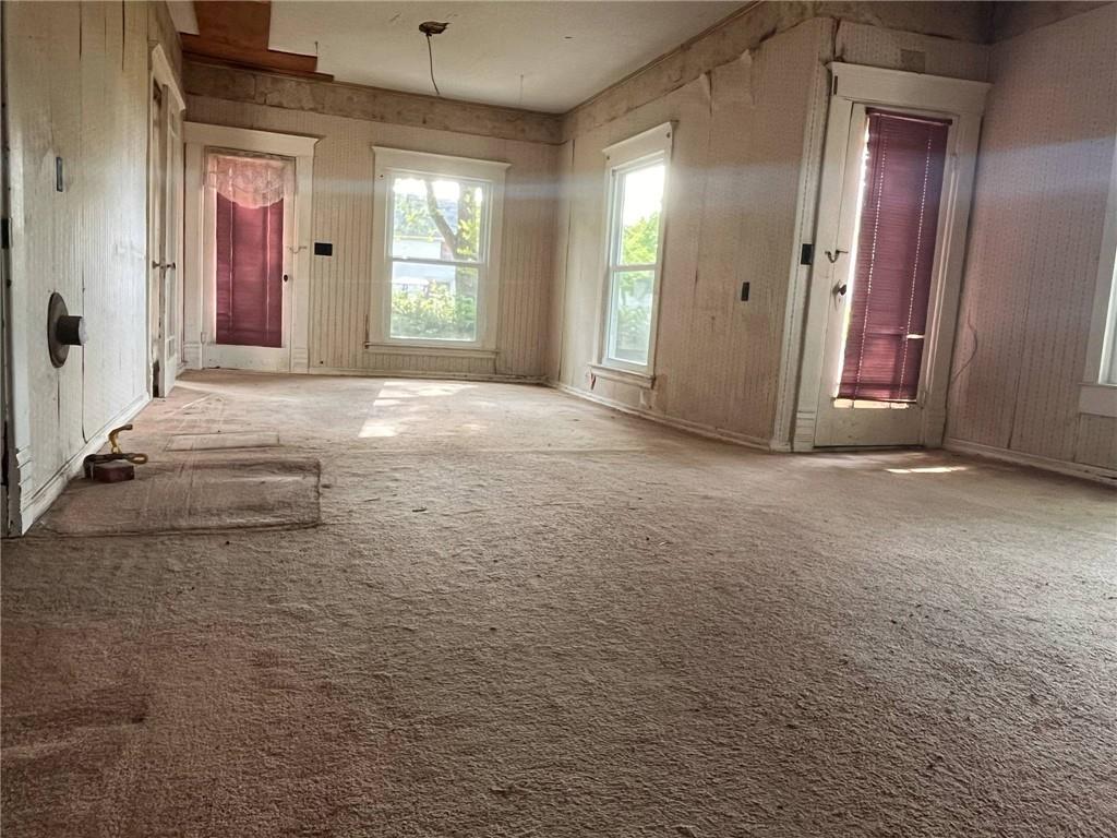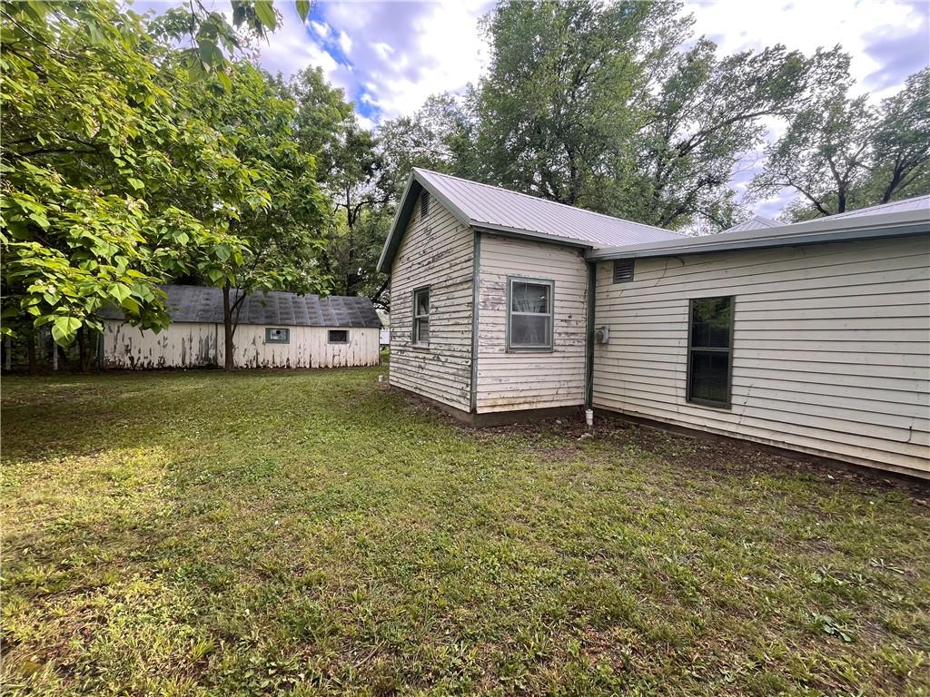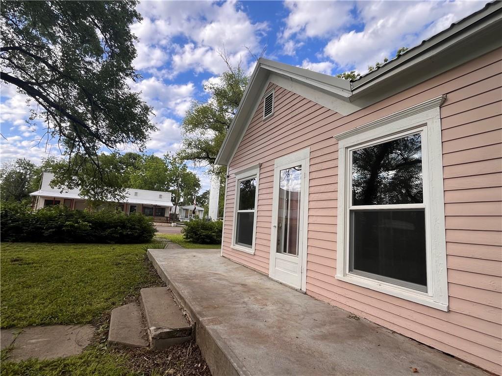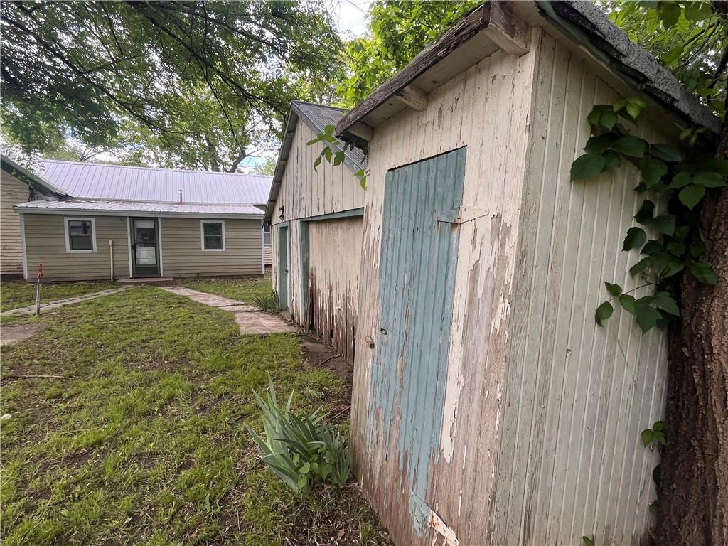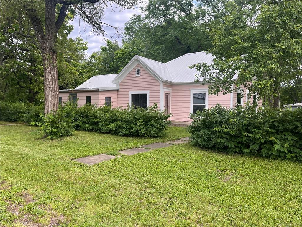 Circa 1900 Victorian Cottage - Charming, spacious corner lot with mature trees and a flowering mock orange shrub edging the yard. Beautiful spring white blossoms with a light orange fragrance filling the air. Outside hydrants for your gardening pleasure. 3 BR, 1 1/2 baths, plus a large office with private outside entrance. If you want to operate a small business from home, this is ready for you. That office could also convert easily to a 4th bedroom. New metal roof with some new sheeting, some replaced windows. Some demo and prep work completed ready for you to finish. Sherwin Williams exterior paint to finish exterior will be left with the house. Seller has 2 new gas heating units that can remain with house if buyer wants them. Currently no heating system in the house. Turn this charming home into an adorable cottage!! Property sells AS IS.