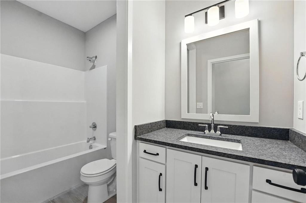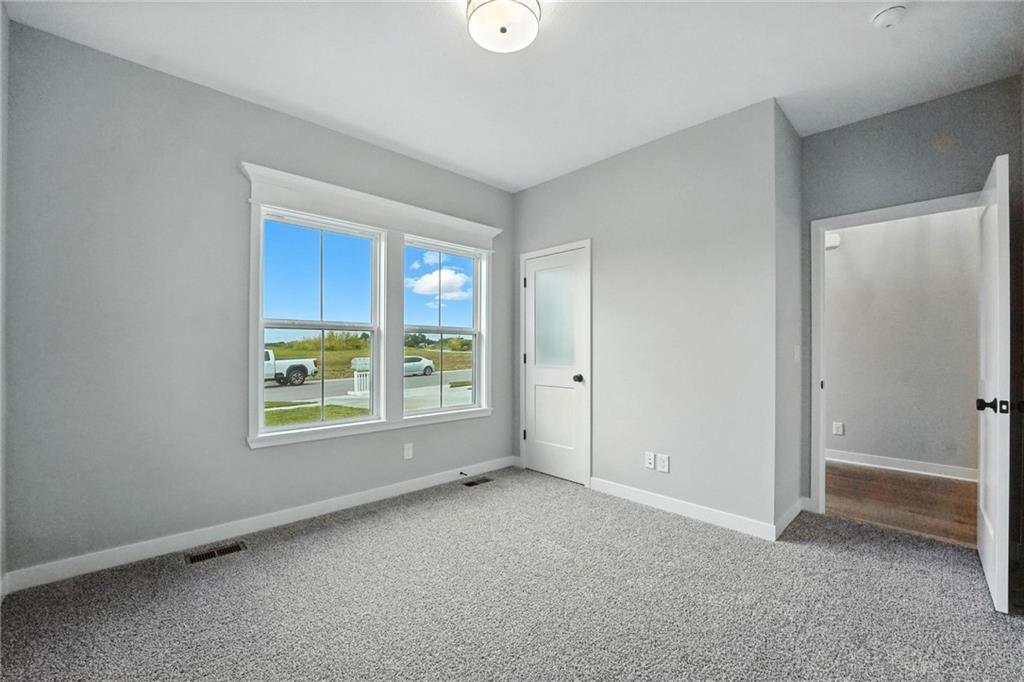 *Ask about $25K Black Friday Special Promotion! Move in Ready! Enjoy your living space and enjoy the luxury provided living in the Truman by Patriot Homes! Located on a beautiful homesite backing to greenspace, this 1.5-story open concept floor plan includes a stone-clad traditional façade, three-car garage, and covered front porch. The 8-foot front door leads into a spacious entry with a 12-foot ceiling highlighted by an elegant trim treatment and chandelier. Hardwood flooring throughout the main entry, living and kitchen accentuates the seamless flow between the dining room, kitchen, and great room while a bedroom and full bathroom just off the entry makes for an ideal guest or bonus room. Arguably the showpiece of the home, the kitchen is outfitted with expansive quartz countertops, large center island, shaker style custom cabinetry, and stainless steel Samsung appliances. Opposite the kitchen is a cozy great room with a gas fireplace, built-in bookshelves, floor-to-ceiling windows, and an 8-foot sliding glass door that opens to a covered composite deck. A private hallway leads to the master suite showcasing an exquisite soaker tub, zero entry walk-in shower, Bluetooth audio system, and a sizeable walk-in closet with third tier pull down rods. The lower level offers a setting ideal for entertaining with a generously sized family room, wet bar, and walkout access to a covered concrete patio as well as two secondary bedrooms, a full bathroom, and two unfinished areas for ample storage. The Truman comes equipped with additional conveniences such as 8-foot tall garage doors with an included belt drive opener on main door, an irrigation system, high efficiency 96% Lennox furnace, whole house humidifier, and 50-gallon electric water heater. Located in Cadence a Hunt Midwest Community with pool and walking trails. *TERMS AND CONDITIONS SUBJECT TO CHANGE AT ANY TIME. PROMOTION VALID WITH AN ACCEPTABLE OFFER