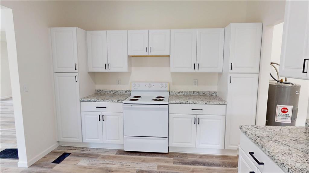This beautifully remodeled 2-bedroom, 1-bath home features fresh updates throughout, including new drywall, flooring, paint, fixtures, and more. The kitchen and bathroom have been completely renovated with stylish new fixtures, offering modern comfort and appeal. Bright and airy with central heat and air, this home provides year-round comfort in a welcoming atmosphere. Located on a corner lot, the property is just minutes from the center of town—close to shopping, dining, and local businesses. The exterior boasts low-maintenance vinyl siding and a spacious wrap-around porch, perfect for relaxing or entertaining. With approximately 1,142 sq. ft. of living space and a lot size of 80x95 feet, this move-in ready gem won’t last long. Schedule your showing today