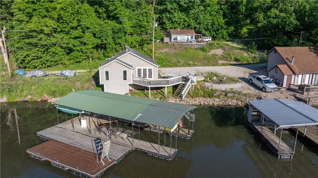 This cozy waterfront home at the 10mm, one cove over from Frankie and Louie's, features an open concept main living space, Breakfast bar, 3 Bedrooms and 2 full bathrooms. The primary bedroom has an ensuite bathroom with a double headed shower plus a extra vanity with a sink "in" the bedroom space. Remodeled in 2019, it offers a "live big" feel with a large deck for gathering and a private dock with a swim platform. Enjoy easy access to nearby restaurants, bars, and shopping by water or road for year-round fun and everyday conveniences. ***3rd bedroom is the loft with mini split***Includes Lots 46 and 56***