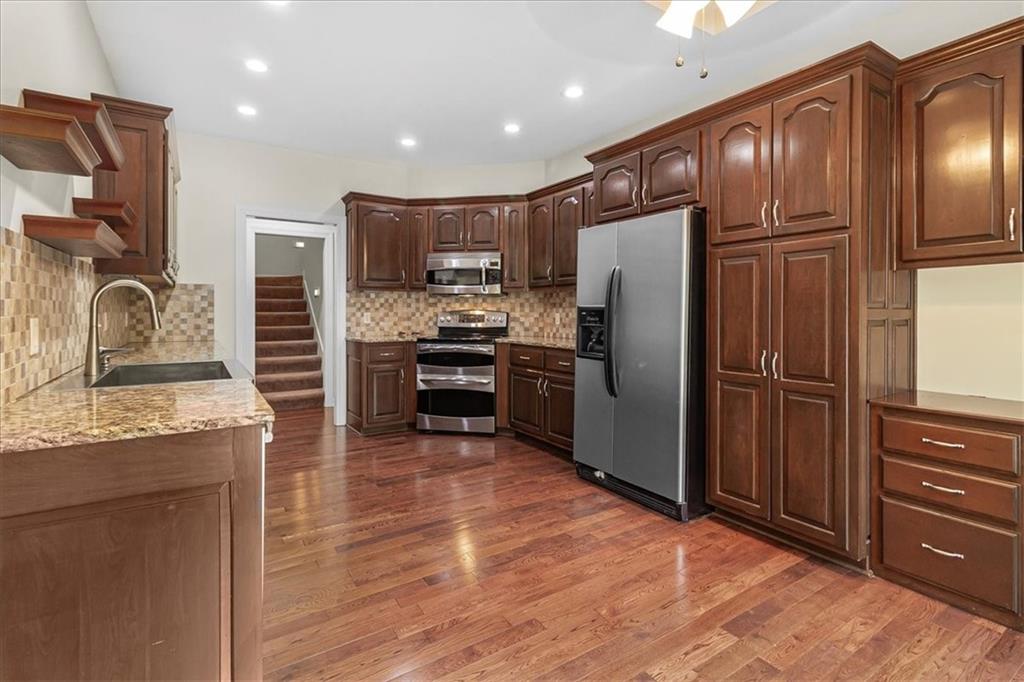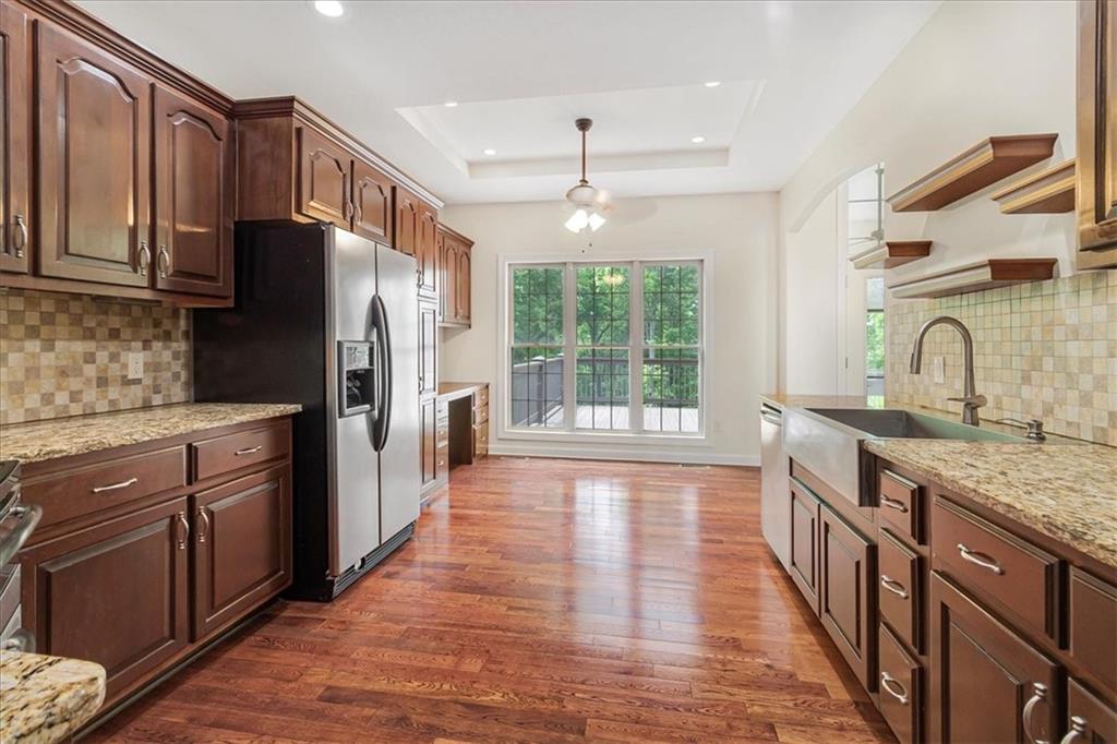 If you enjoy privacy while also enjoying the benefits of the city this is the perfect home for you! This beautiful executive home is located nestled on a wooded lot with Fruit trees adorning the front yard. There is plenty of room for everyone with 6 spacious bedrooms 4 full bathrooms and 1 half bath. You will feel the luxury the sellers upgraded to this home with Cherry wood floors throughout the main floor and cherry kitchen cabinets. Stainless steel appliances and a Farm sink, granite counter tops make this kitchen a beautiful setting to prepare your meals in. Main floor master bedroom with walk in closet. Sellers added 2 separate sunrooms one on the main level and the other on the lower level to bring the outdoors indoors. The lower level features a HUGE OPEN family room/ recreation room with a bar area. 2 bedrooms and a full bath are located in the lower level along with a large storage room and safe room. The 6th bedroom is located above the garage along with 2 closets and a full bathroom. 3 bedrooms and 2 & 1/2 baths are located on the main floor. Main floor living room features vaulted ceiling, fireplace and open to the formal dining room. This home provides tons of space for a large crowd!