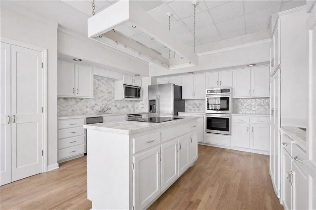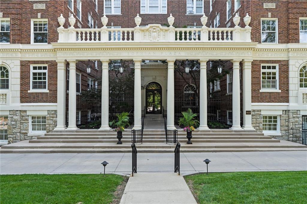 Note: Some pictures have been AI generated to show how the space could be renovated by a new buyer to create a sleek and sophisticated home ready for today's living? SELLER TO PROVIDE A CREDIT FOR BUYER AT CLOSING EQUAL TO SIX MONTHS HOA DUES WITH AN ACCEPTABLE OFFER. Once in a lifetime opportunity to have one of THE coolest, most unique condominiums in Kansas City. The former dining room for The Sophian, this 3,405sf unit has 12' ceilings, ornate moldings and ample windows and light. There is a separate, dedicated entrance off the south side of the building in addition to direct access via the elevator from the lobby. There is a deeded parking space (20P) in the garage and a parking space in the parking lot. Bring your imagination and vision as this unit will take some work but the reward will be amazing! The Sophian has a "no pet" policy and Is a non-smoking building.