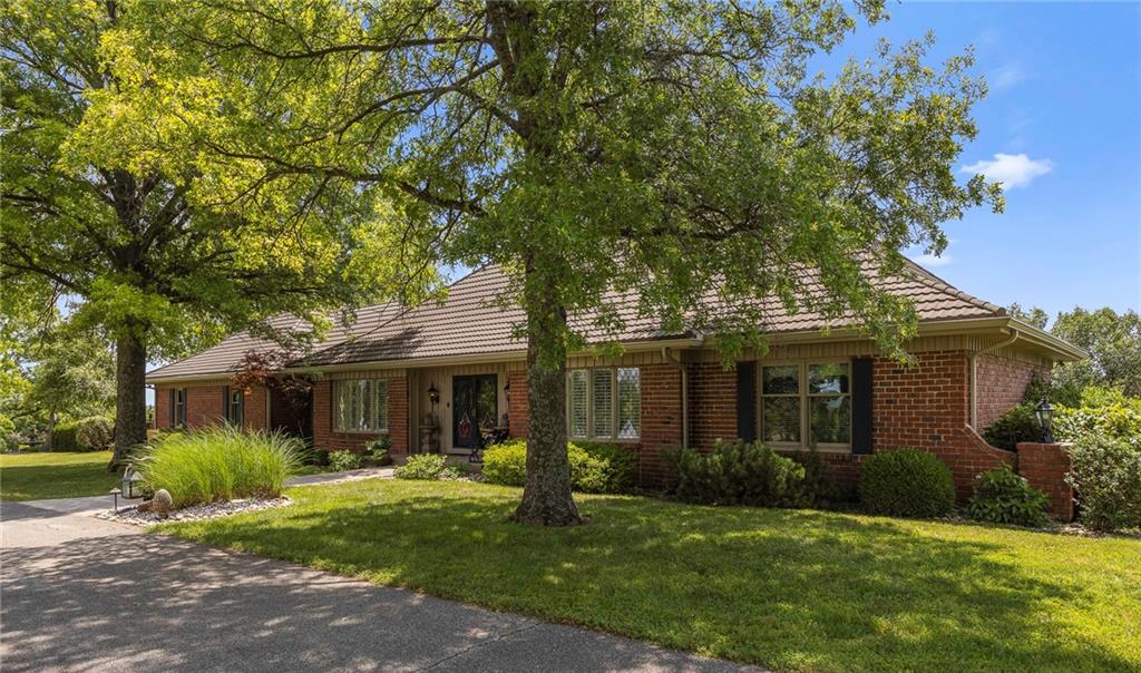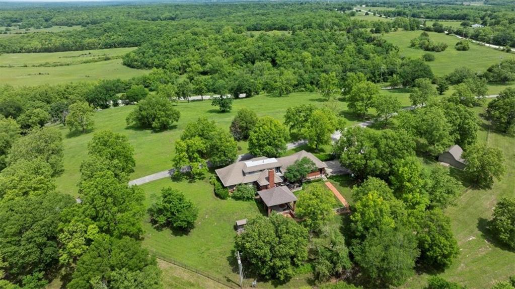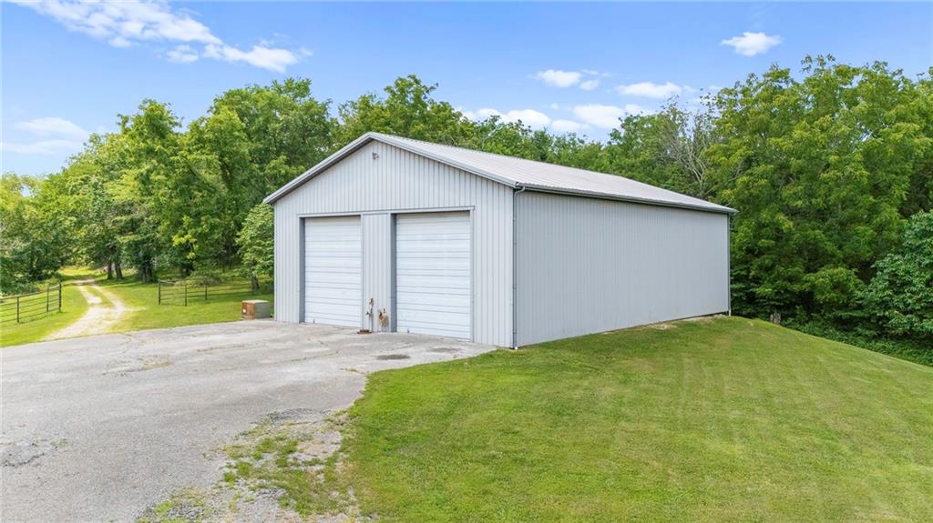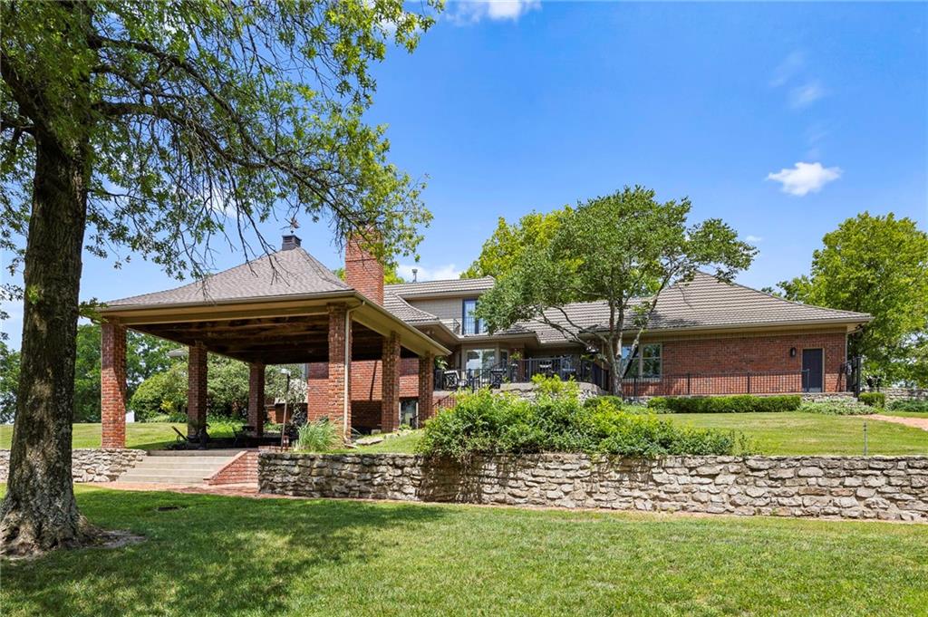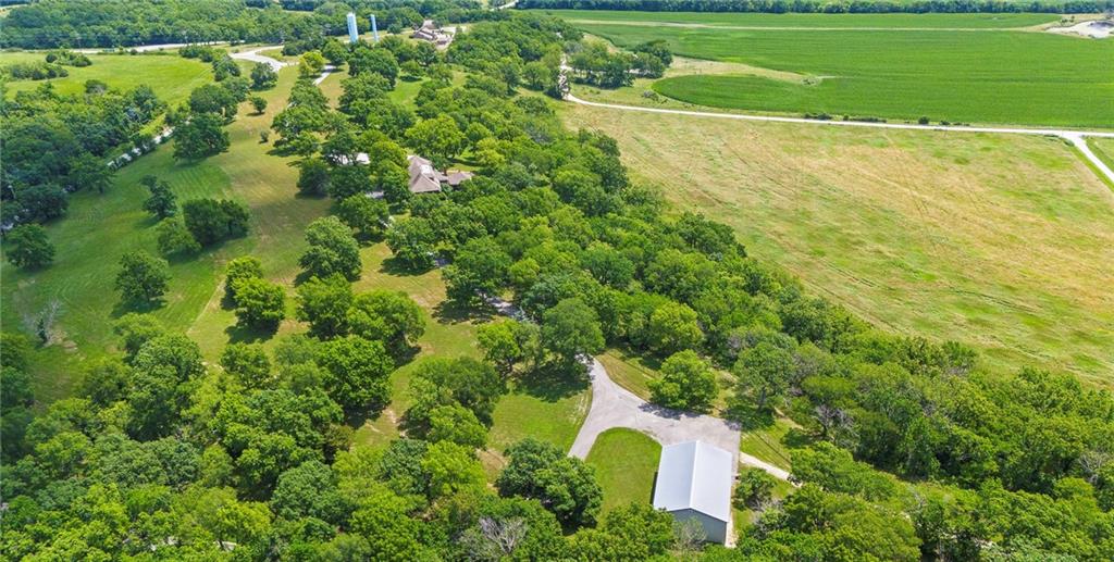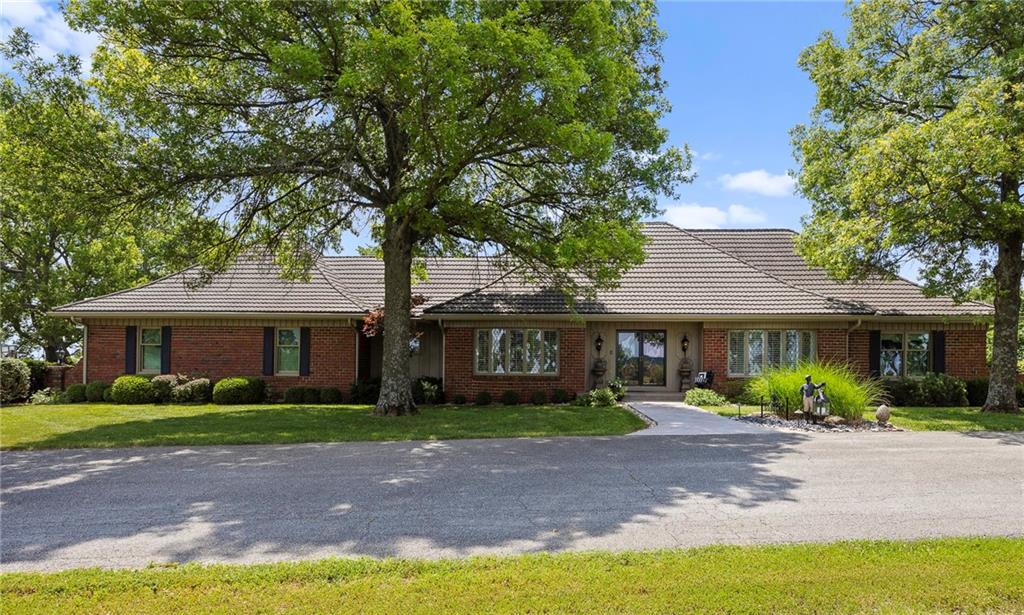 Experience breathtaking panoramic views and total tranquility at this custom-built, all-brick estate, perfectly situated on 38.8± acres of rolling countryside. Thoughtfully designed and impeccably maintained, this stunning property offers the ideal blend of luxury, functionality, and seclusion—just a short drive from Overland Park and Kansas City. Inside, you'll find quality craftsmanship throughout, including a fully remodeled kitchen at the heart of the home. Recent updates span both the main and upper levels, featuring new flooring, interior paint, modern lighting and plumbing fixtures, and beautifully renovated bathrooms. The expansive finished basement is an entertainer’s dream, complete with a second full kitchen, cozy fireplace, wet bar, and generous space for relaxing or hosting guests. Step outside to enjoy a newer stamped concrete patio with elegant iron railing—perfect for soaking in the sunrise or winding down at sunset. Most windows have been replaced, and the durable stone-coated steel/asphalt roof with new 6” gutters ensures long-term peace of mind. Additional features include a circulating hot water system, newer HVAC units, and a recently replaced hot water heater. Two versatile outbuildings complete the property: a 40x60 insulated shop with electric strip heat, water, and dual 220V RV hookups, plus a 20x28 utility building with lean-to and loft—ideal for storage, hobbies, or workspace. This is more than a home—it’s a rare opportunity to enjoy refined country living with the convenience of nearby city access. Don't miss the first-ever chance to make this amazing property yours!