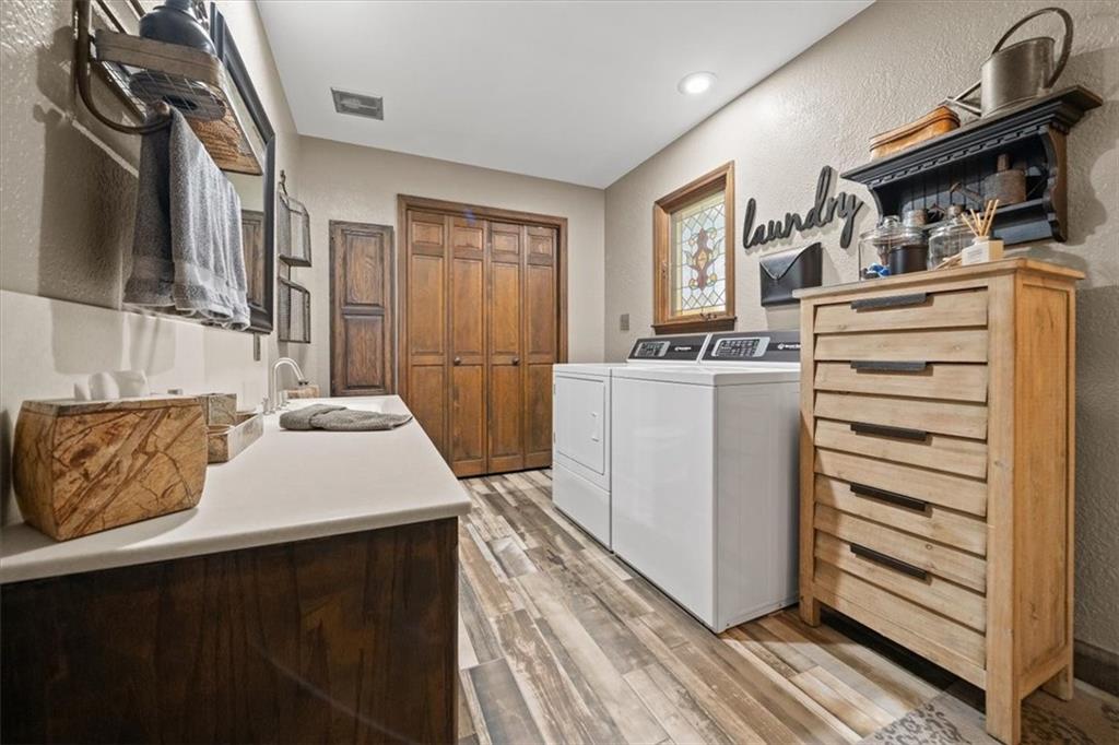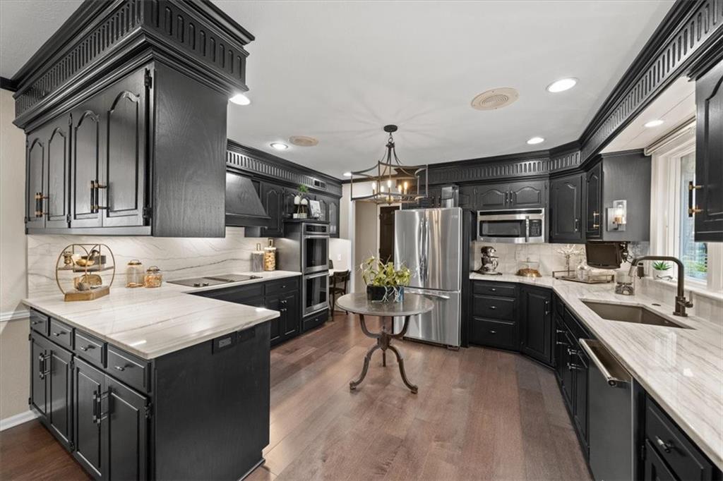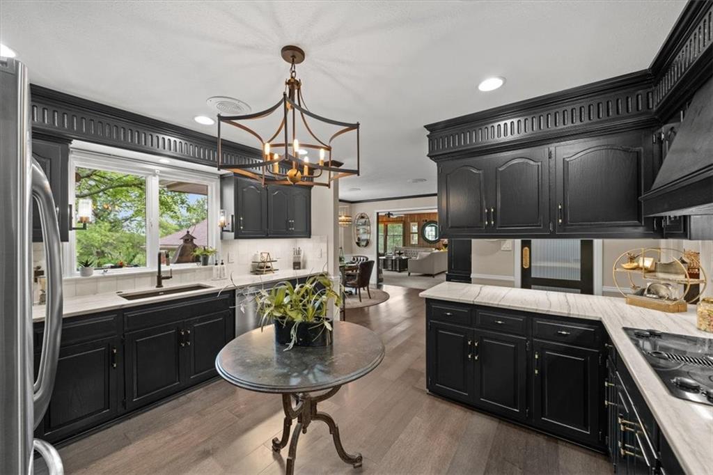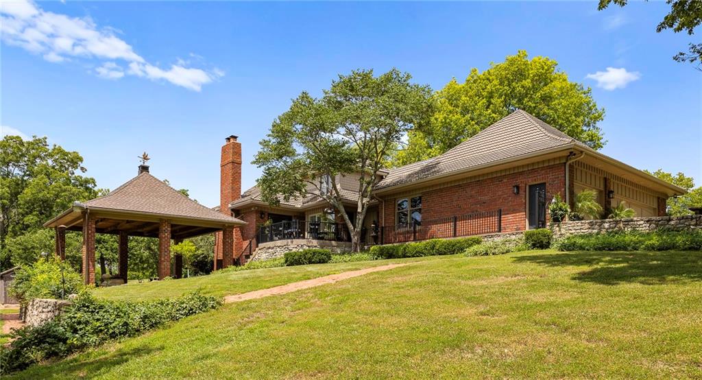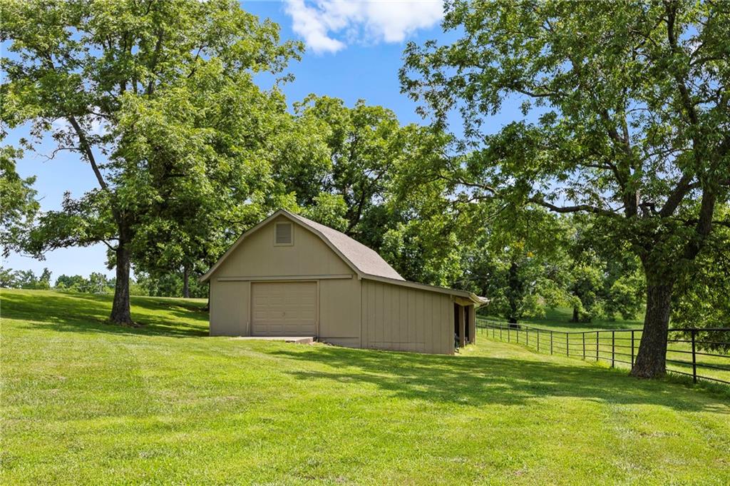 Experience breathtaking panoramic views and total tranquility at this custom-built, all-brick estate, perfectly situated on 38.8± acres of rolling countryside. Thoughtfully designed and impeccably maintained, this stunning property offers the ideal blend of luxury, functionality, and seclusion—just a short drive from Overland Park and Kansas City. Inside, you'll find quality craftsmanship throughout, including a fully remodeled kitchen at the heart of the home. Recent updates span both the main and upper levels, featuring new flooring, interior paint, modern lighting and plumbing fixtures, and beautifully renovated bathrooms. The expansive finished basement is an entertainer’s dream, complete with a second full kitchen, cozy fireplace, wet bar, and generous space for relaxing or hosting guests. Step outside to enjoy a newer stamped concrete patio with elegant iron railing—perfect for soaking in the sunrise or winding down at sunset. Most windows have been replaced, and the durable stone-coated steel/asphalt roof with new 6” gutters ensures long-term peace of mind. Additional features include a circulating hot water system, newer HVAC units, and a recently replaced hot water heater. Two versatile outbuildings complete the property: a 40x60 insulated shop with electric strip heat, water, and dual 220V RV hookups, plus a 20x28 utility building with lean-to and loft—ideal for storage, hobbies, or workspace. This is more than a home—it’s a rare opportunity to enjoy refined country living with the convenience of nearby city access. Don't miss the first-ever chance to make this amazing property yours!