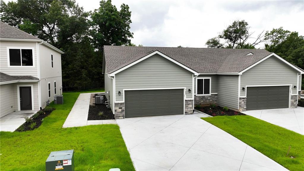 Enjoy a small-town feel just minutes from the city in the desirable Highland Ridge community. This 3-bedroom, 3-bath ranch villa offers an open-concept floor plan with generously sized bedrooms and a finished lower level perfect for additional living or entertaining. The deep garage allows space for multiple vehicles, storage, or recreational equipment. Luxury finishes throughout include granite countertops, tile backsplash, soft-close cabinets and drawers, and floor-to-ceiling tile in the primary shower. 10-foot ceilings and oversized windows provide excellent natural light — a must-see value at this price point. Conveniently located: • 20 minutes to Downtown KC • 5 minutes to The Legends for shopping and entertainment • 15 minutes to the Overland Park business corridor, Garmin HQ, and Panasonic Comfort, quality, and convenience come together here.