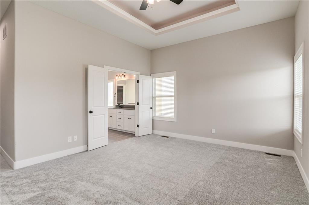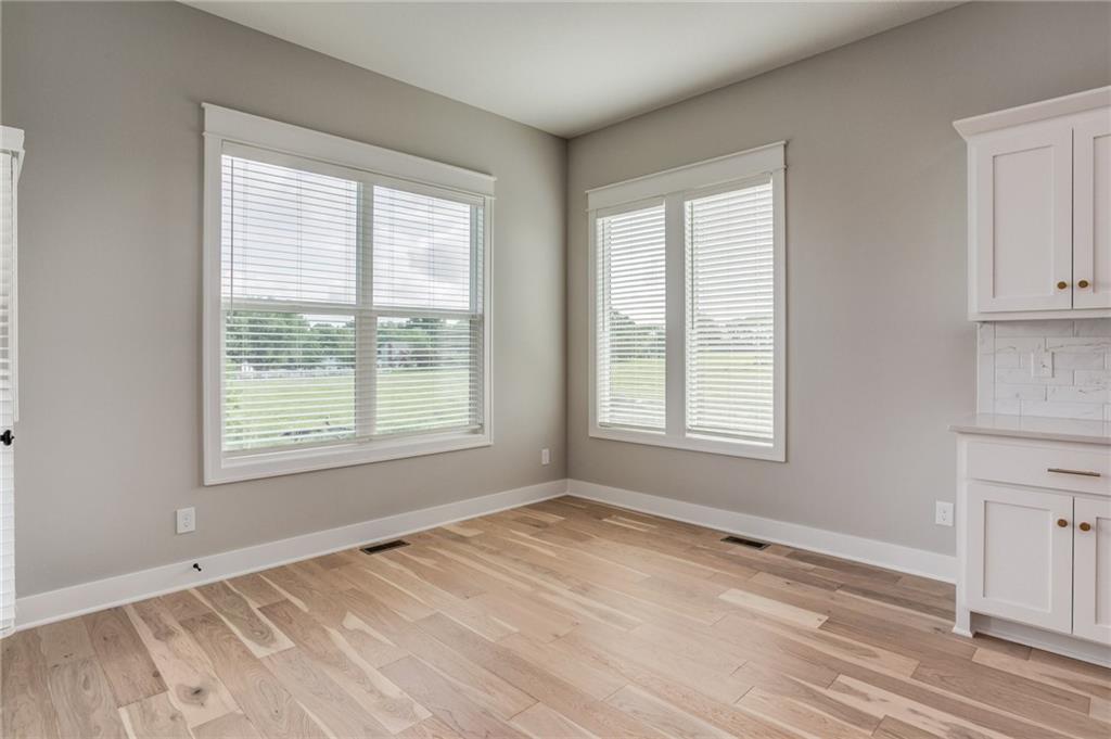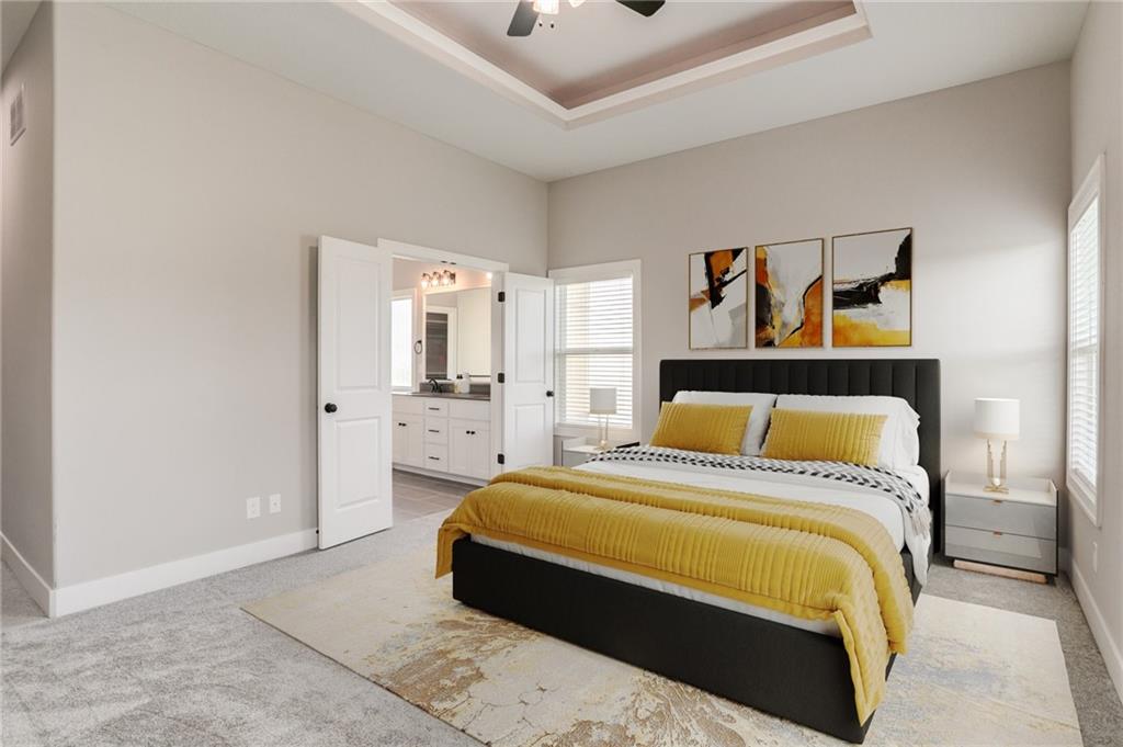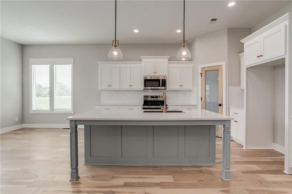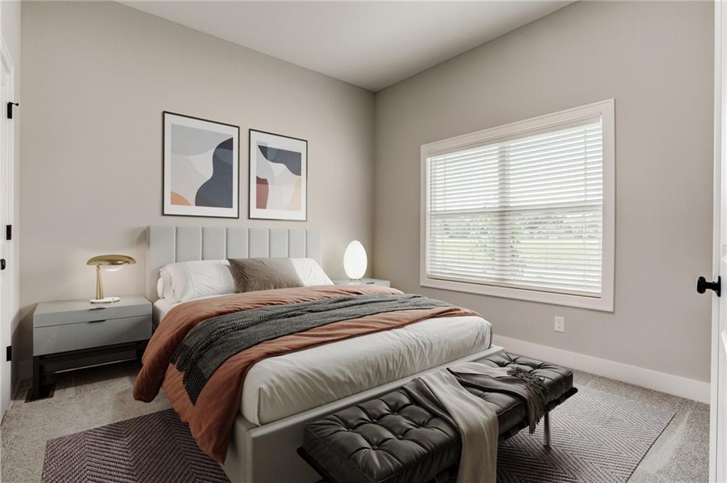 The Colleen by Martens Family Enterprises in a new layout. Wider great room, and new master bath layout with added privacy glass window. Beautiful open floor plan with vaulted ceilings and additional windows. Matte black faucet package upgrades and Champagne Bronze kitchen faucet upgrade, Free-Standing tub upgrade in the master bath, covered patio, and covered front porch. Finished basement with 9ft foundation walls. 8lb carpet pad, 3rd row of vertical storage in master closet with additional custom shelving. Vaulted ceiling with LED ambient lighting in the master bedroom. Linear electric fireplace upgrade with heat, Extended kitchen cabinets, and quartz countertops throughout. Extensive trim upgrades including cubed wood spindles, Accent wall behind the Fireplace, Custom floating mud bench with added upper cubbies, and added coat hook in entry. Smart thermostat. 2-inch faux-wood blinds, sprinkler system, and smart garage door openers are standard. Backs to the Area Retention pond. Area HOA Pool has an extended pool season due to it being a Heated Pool with a splash zone and slide, a Stocked Fishing lake with trails, a fire pit, a picnic shelter, and a playground. Home can close in as little as 7 days from the final walkthrough. Taxes/sqft are estimated. NOTE: SOME PHOTOS ARE DIGITALLY STAGED.
