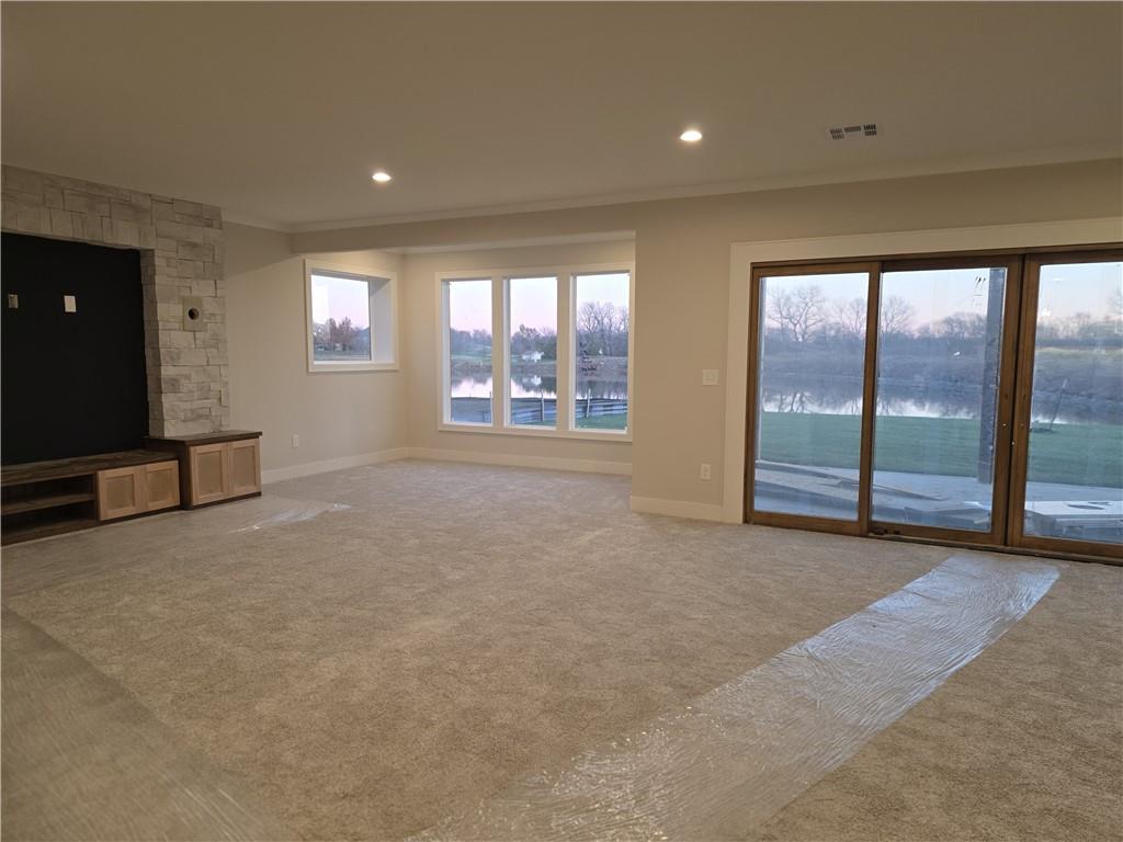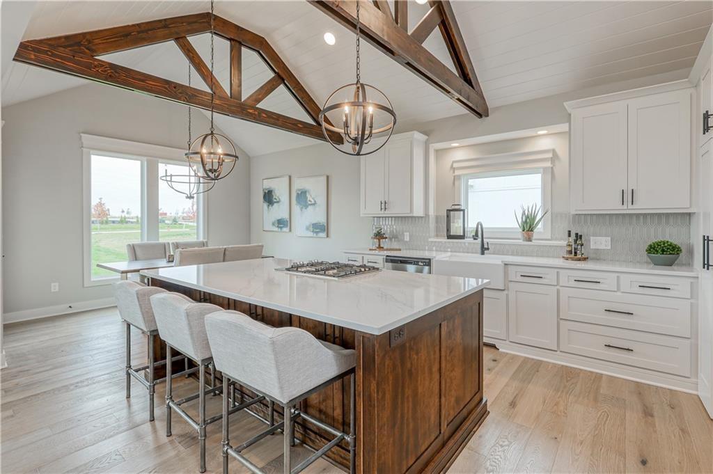 Lot 122 The "Prairie Rose" by McQueen Homes! Spectacular home and LAKE views in a GOLF COURSE COMMUNITY!! Professional photos coming soon. The finished photos and tour are from a previous similar home. Can be ready in 30 days or less! Reverse plan with open Great Room full of windows with fireplace. Open to the Kitchen and Dining Area with large Island & walk in pantry. The Primary Bedroom boasts a double box up ceiling and windows to view the lake! Additional higher transom windows on a feature wall for added light. Unique Primary Bathroom has a walk in shower and a stand alone tub with a view of the lake! Second Bedroom and Bath are on the main level. The Lower Level walkout Rec Room includes a wet bar, entertainment area and gorgeous upgraded sliding doors to your outdoor living. A full bath and Bedrooms 3 & 4 complete the lower level. Good storage! Large covered deck and additional uncovered deck for viewing the Lake and enjoying the outdoors as well as a large patio at the lower level walk out. All homes in the Boulder Estates come with irrigation system and fully sodded yard. Riprap seawall at property edge also included. Convenient highway access. Ten minutes to the Legends and 30 minutes to the airport and most other parts of the metro area as well as Lawrence. Community pool, play area, basketball, tennis and pickleball courts. Wonderful restaurant open to the public. Acclaimed Basehor-Linwood Schools!