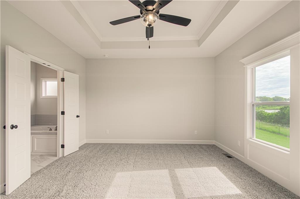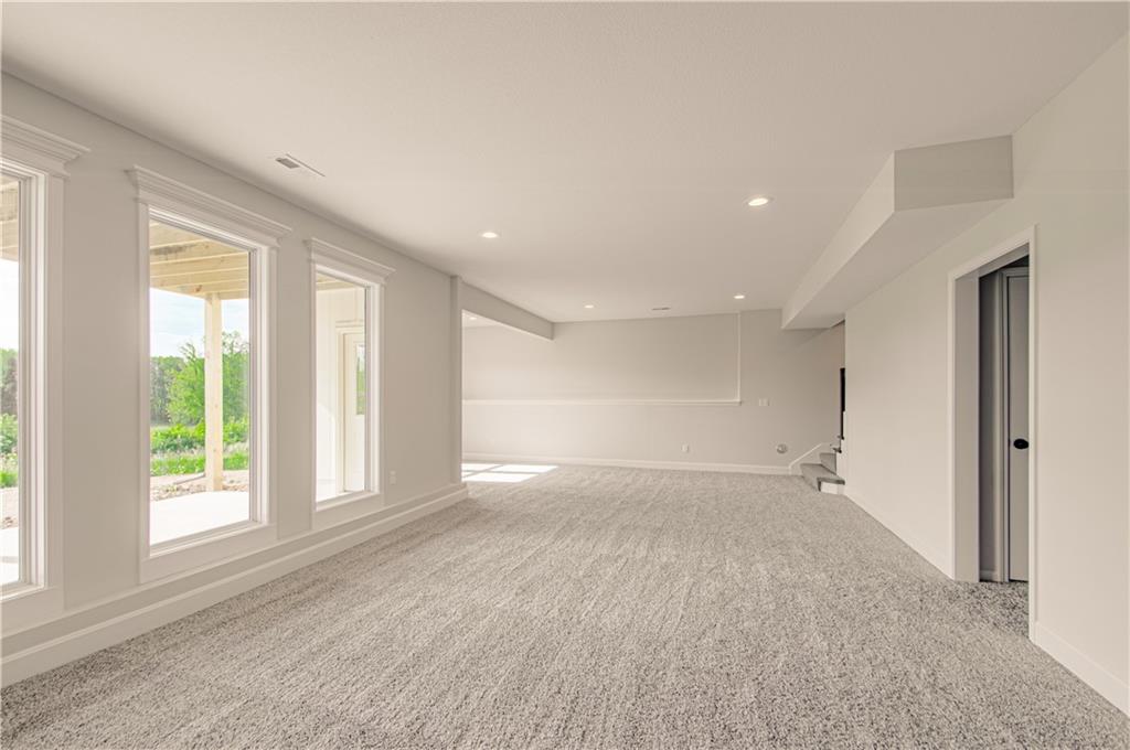 PREMIUM LOT with a Beautiful setting BACKING TO LAKE! The "KENNA" by Robertson Construction! This Gorgeous Reverse 1.5-Story, with an unobstructed Lake View, offers 4 bedrooms, 2 on the Main Level, 3 Full Baths and is built with 2x6 exterior walls, an upgraded insulation package along with a super high efficiency heating and cooling system! An Open Layout features Floor to Ceiling Windows showing off the peaceful view, Stone Fireplace accented with Floating Shelves, Kitchen Island, Solid Surface Countertops, Custom Built Cabinets, WALK-IN PANTRY and Wide Plank Engineered Hardwood Flooring. Oversized Covered Deck is accessible from both the Master Suite and Breakfast Area. The PRIVATE Master Suite has a luxurious Master Bath and WALK-IN Closet that conveniently adjoins to the Laundry Room. You will find more Finished Square Footage in the WALKOUT Basement featuring Floor to Ceiling Windows, 2 more Bedrooms, Full Bath, LARGE FAMILY ROOM and a generous amount of storage! PATIO at WALKOUT. Ideal location close to local amenities. Located in the highly-rated Liberty North School District! SUBDIVISION POOL. FINAL FINISH STAGE! APPROXIMATELY 30 DAYS TO COMPLETION!