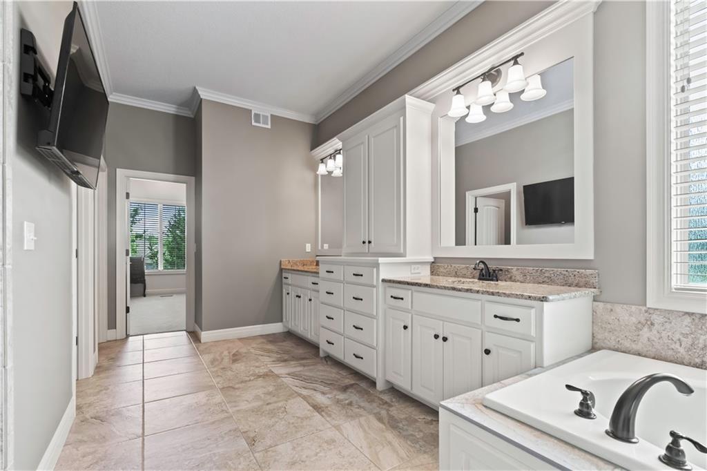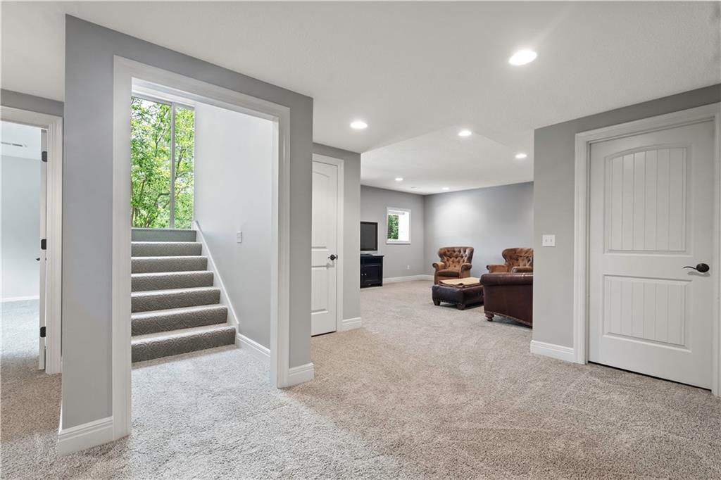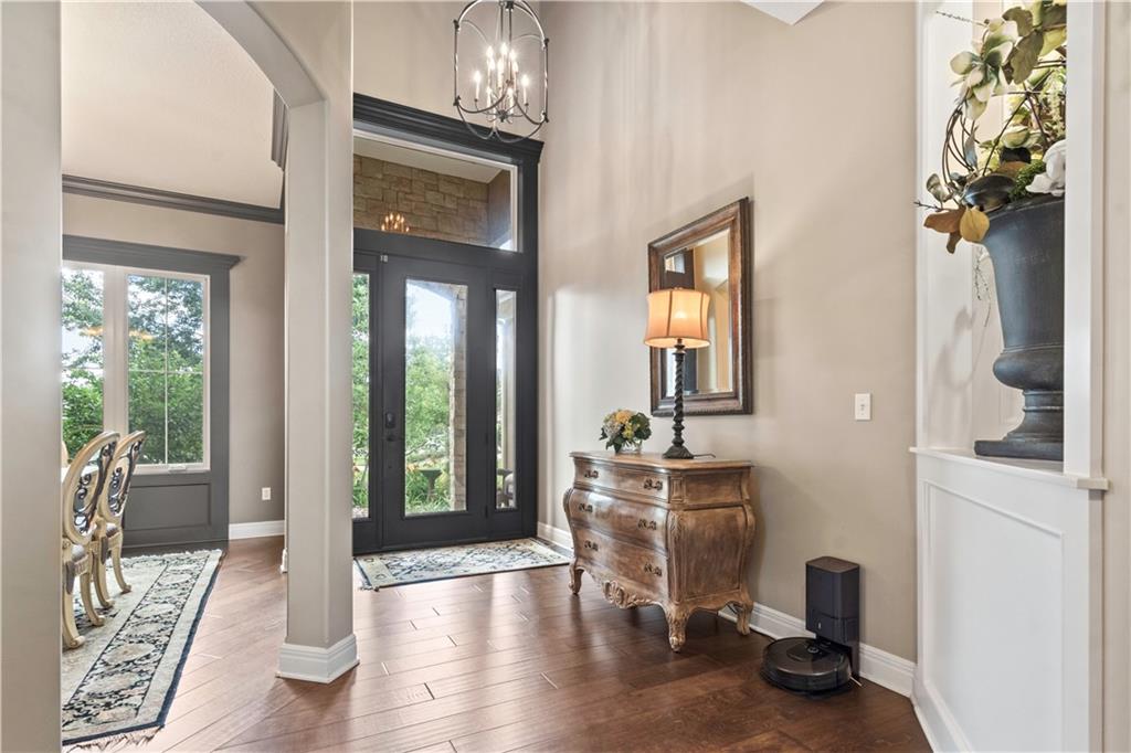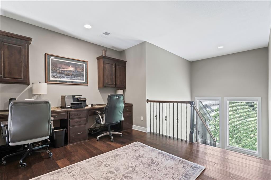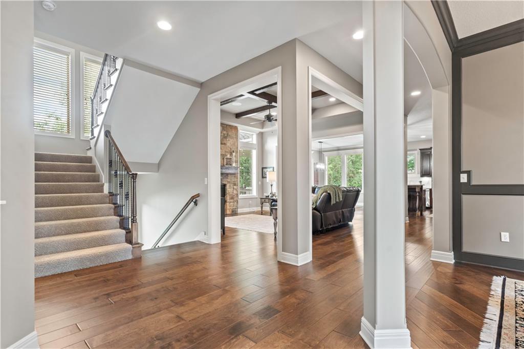 Welcome to this beautifully designed 1.5-story stucco home, nestled at the top of a quiet cul-de-sac in one of Overland Park’s most desirable areas. Boasting over 5K sqft and a spacious layout ideal for both entertaining and everyday living, this home sits on a large lot with a fence on three sides and a generous yard—perfect for privacy and play. Step inside to warm wood floors, a grand vaulted great room, and a functional main-level layout that includes a primary suite with spa-like bath featuring a walk-in shower, soaking tub, dual vanities, and a massive walk-in closet with direct access to the laundry area. The main level also offers a mudroom, bar area with an additional refrigerator, breakfast nook, and a covered porch—ideal for enjoying morning coffee or evening sunsets. Upstairs, you’ll find a versatile lofted flex space, office nook, and three additional bedrooms—two connected by a Jack & Jill bath with walk-in closets, plus a fourth bedroom with a private en suite and its own walk-in closet. The daylight lower level adds incredible bonus space with two additional bedrooms, each with walk-in closets, a shared full bath, recreation room, and abundant storage for all your needs. This home checks every box—space, style, functionality, and location!