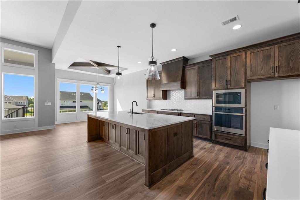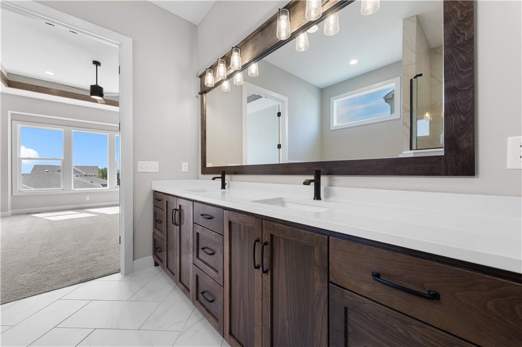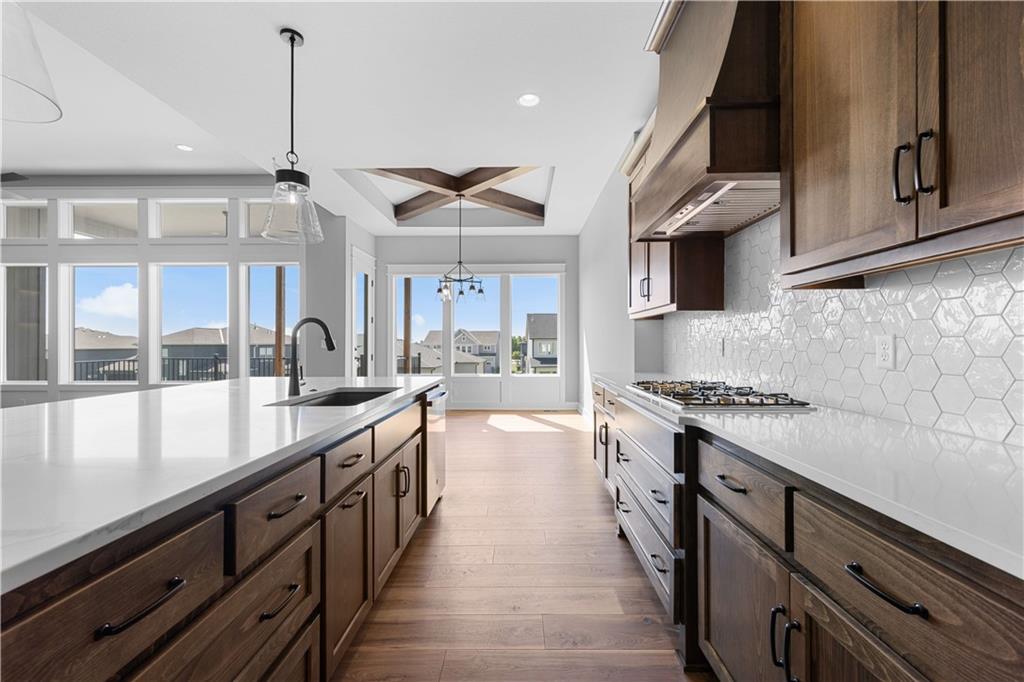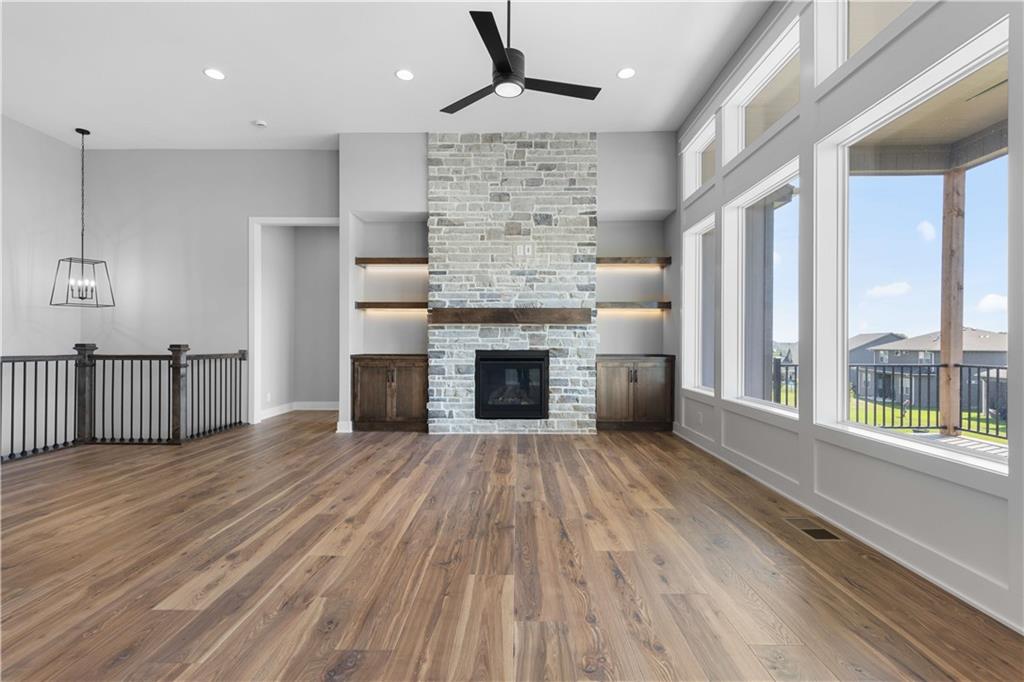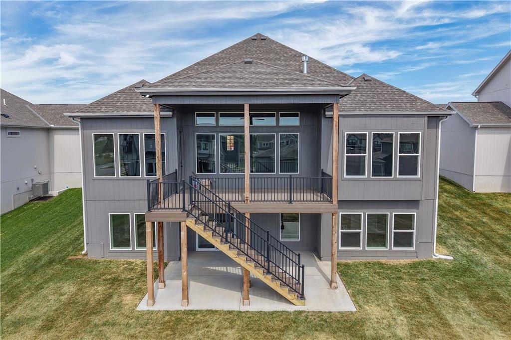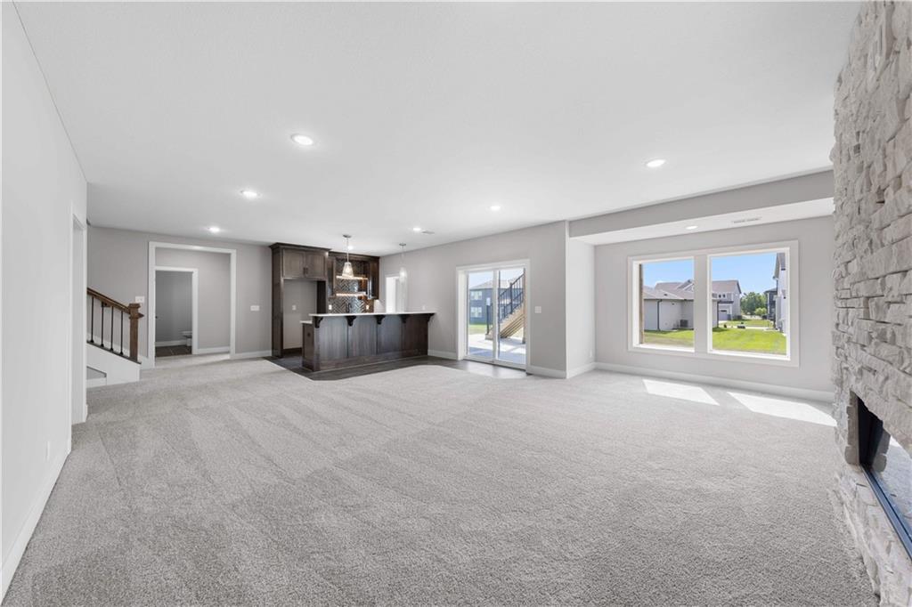 $10k Builder Incentive for closing costs or rate buy-down assistance if you close before 12/31/25! Welcome home to the WINDSOR by Inspired Homes, a Reverse 1.5 Story that boasts over 3,500 SF and is situated on one of the communities FEW WALKOUT LOTS! As you enter the home, you'll be greeted with a large kitchen featuring stained cabinetry and an oversized 10-foot island, creating the perfect entertainer's space. This home also includes a huge low maintenance, covered deck with aluminum rails, composite decking & stairs leading down to a lower patio. Designer options for this home feature a full basement wet bar, wood trim ceiling & wall details, upgraded lighting, upgraded quartz countertops, built-in cabinets & shelving in great room, an additional fireplace in the basement, direct access to laundry room from the primary closet, and a HUGE walk-in pantry! This home includes extra deep garages, 8’ garage & front doors, irrigation systems, HVAC humidifier, garage openers and gas cooking with built in SS GE Profile appliances, low-e Pella windows and doors, custom wood cabinetry, tray ceilings, and so much more! Located in the highly sought-after Pryor Ridge neighborhood in Lee's Summit, this property offers a lifestyle characterized by both comfort and convenience. Residents can indulge in community amenities including a junior-competition sized swimming pool and sun cabanas, a large playground, pickle ball and basketball courts, an off-leash dog park, local walking trails, and expanses of green space to enjoy. Notably, shopping destinations and restaurants are just minutes away, providing homeowners with the opportunity to enjoy the charm of a countryside atmosphere while benefiting from the practicality of urban living right in Pryor Ridge. ***BUY WITH PEACE OF MIND, the convenience of new construction backed by a 2-10 Home Warranty, offering 10 year structural, 2 year mechanical, 1 year workmanship PLUS in house warranty representative! Photos are of actual home.