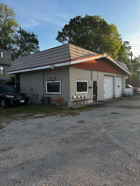 Excellent opportunity to own a versatile commercial property situated on a high-visibility corner lot. This property could be ideal for contractors, service businesses, or anyone needing a secure outdoor storage and functional workspace. 2 car garage bays with 10-foot overhead doors - Bonus storage are behind bays 10x10, fully fenced in yard, two private office spaces, indoor &outdoor bathrooms and updated electrical and ample onsite parking. Large 2 car garage with 10' doors-Has extra inside storage space behind bays -10 X 10 tile lobby area with restroom and Private office - Updated electrical.