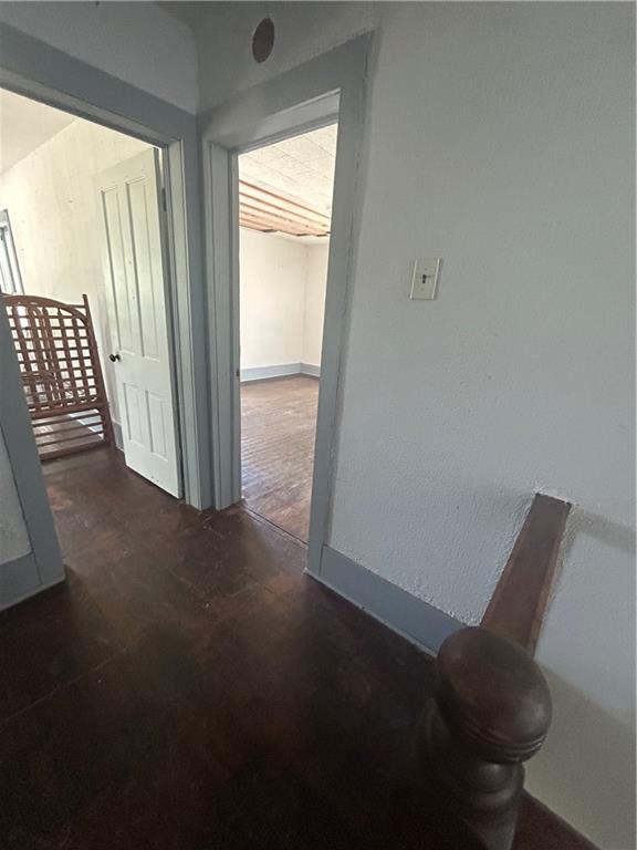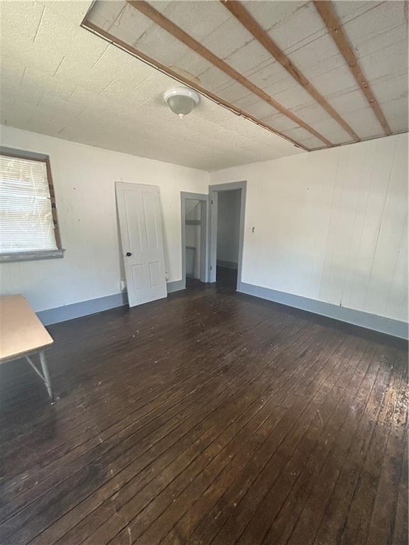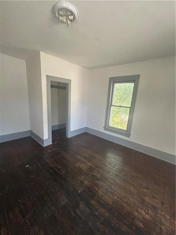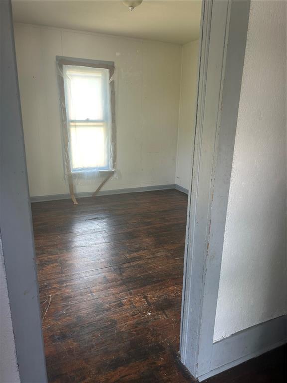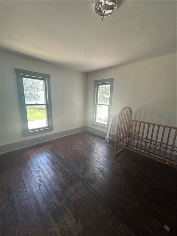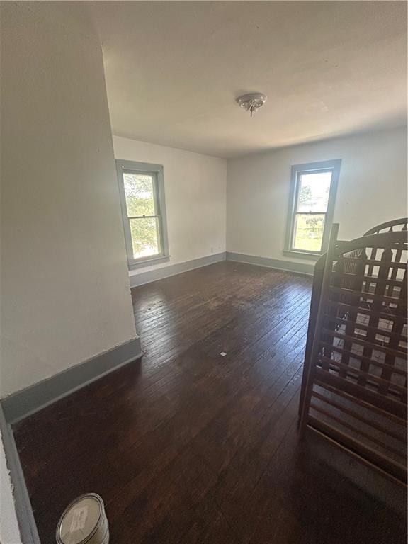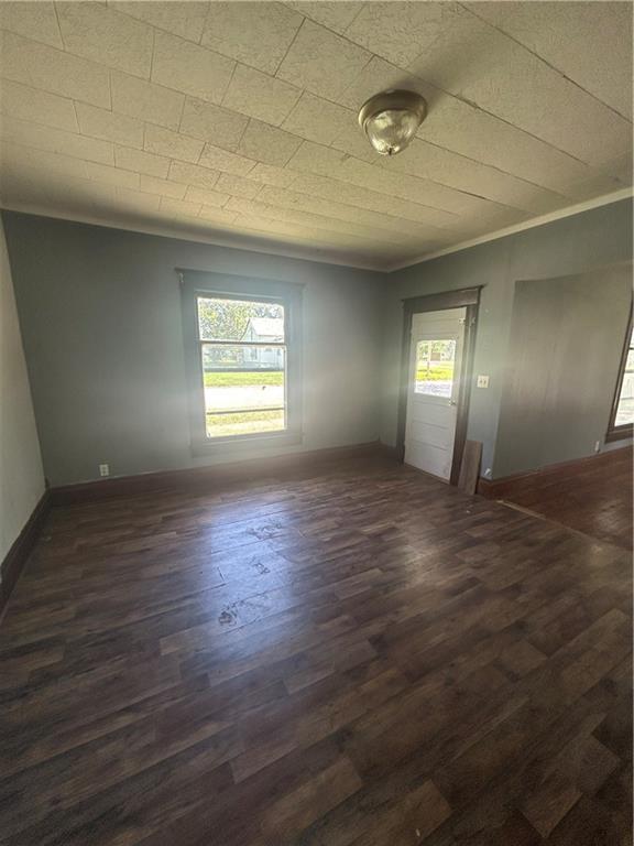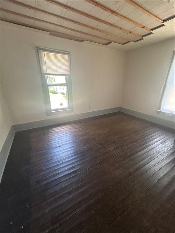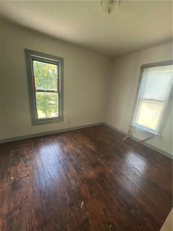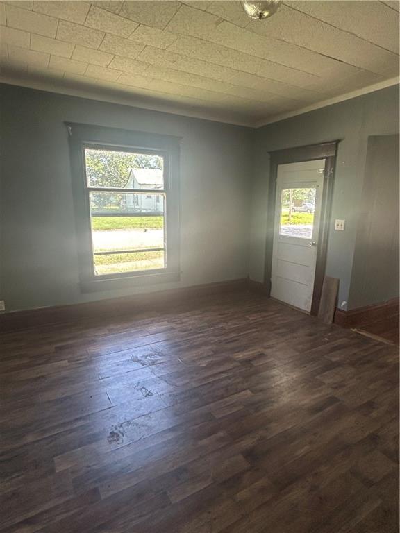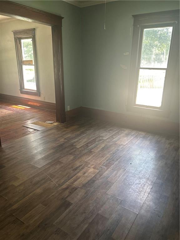 Unfurnished room featuring healthy amount of natural light and dark wood-style flooring