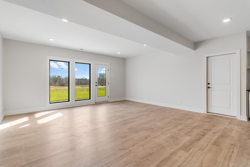 Discover the perfect blend of luxury, function, and craftsmanship in this stunning reverse 1.5-story home by Worley Construction, located on a spacious 1/2-acre lot in The Estates at Knoll Creek—a premier Raymore community with a walking trail and a neighborhood fishing pond. This thoughtfully designed home offers 4 bedrooms, 3 bathrooms, and 2,787 finished square feet filled with custom finishes and quality materials. The open-concept main level features hardwood floors, a spacious great room with a stone fireplace, and a gourmet kitchen with quartz countertops, custom cabinetry, a walk-in prep pantry, and a wood vent hood. The primary suite includes a spa-like bath with a walk-in tiled shower, dual vanities, and a generous walk-in closet that connects directly to the laundry room. The finished walkout lower level adds two more bedrooms, a full bath, a large rec room with a full wet bar, and a rare bonus: a basement garage bay—ideal for storing lawn equipment, tools, or creating the perfect workshop or hobby space. Enjoy outdoor living on the covered composite deck overlooking the treed green space. With upscale design, flexible living spaces, and a quiet, scenic neighborhood, this home offers the lifestyle today’s buyers are looking for.