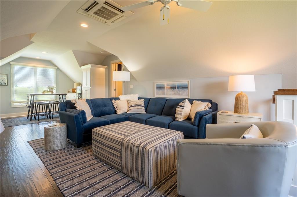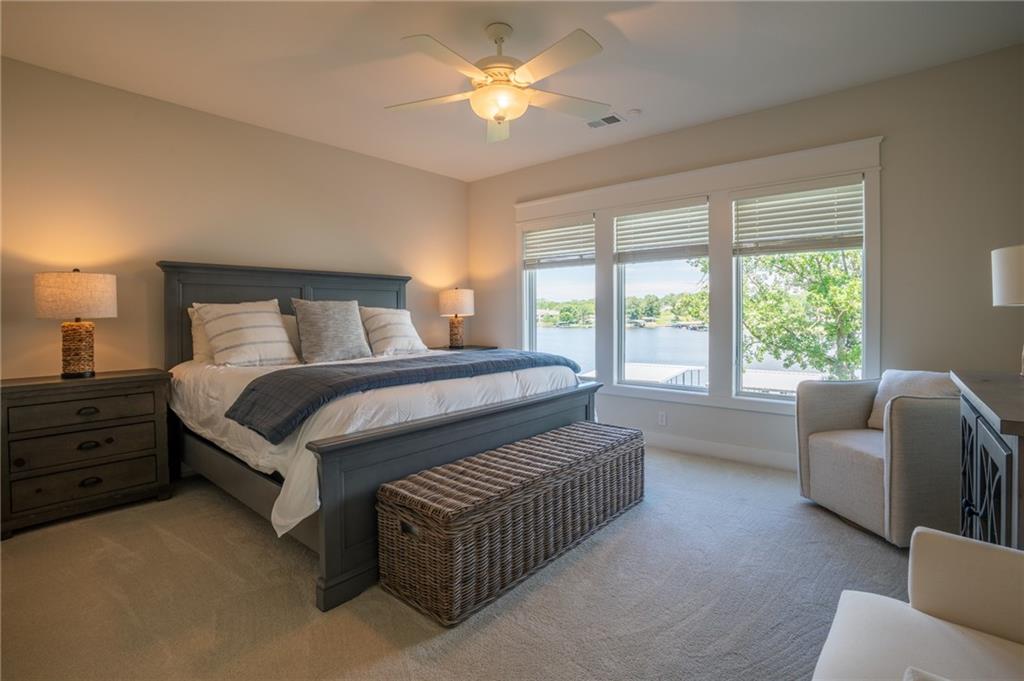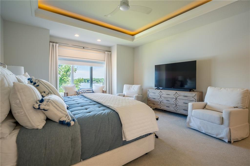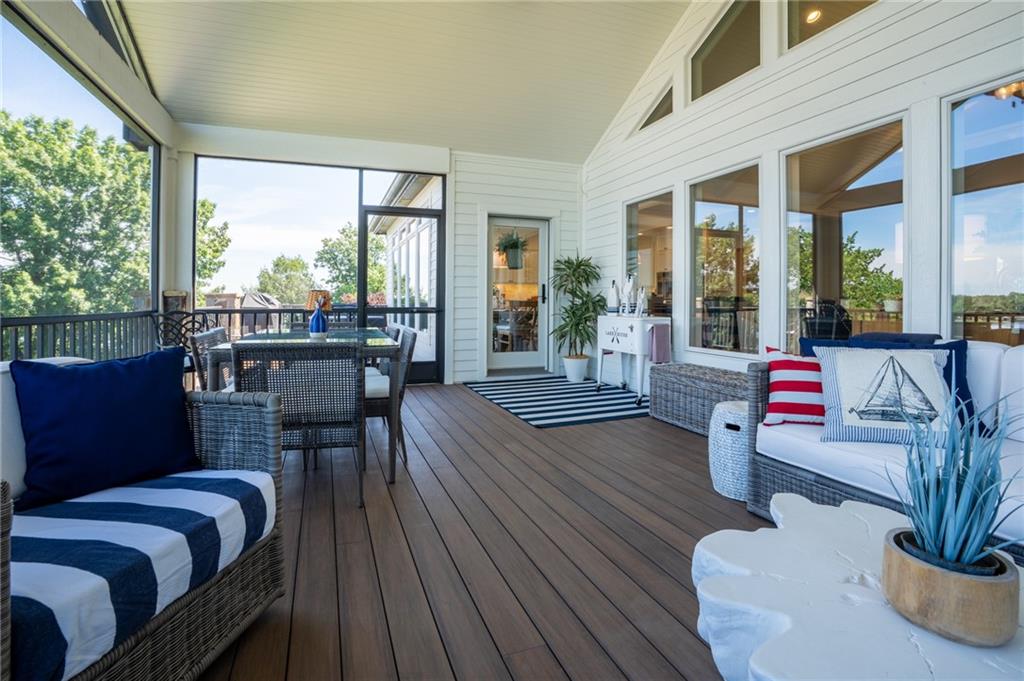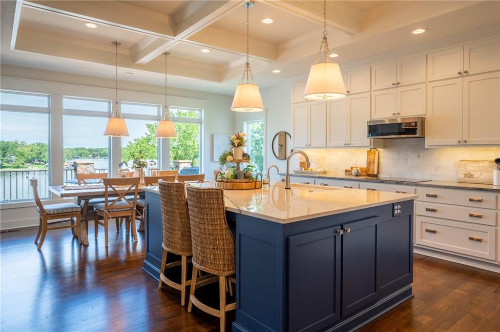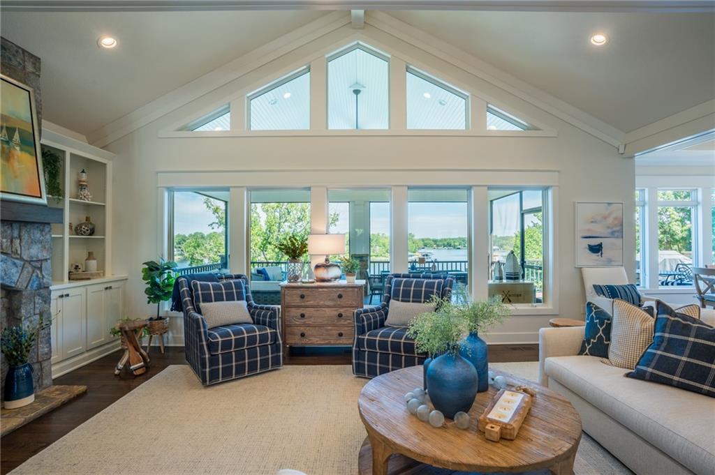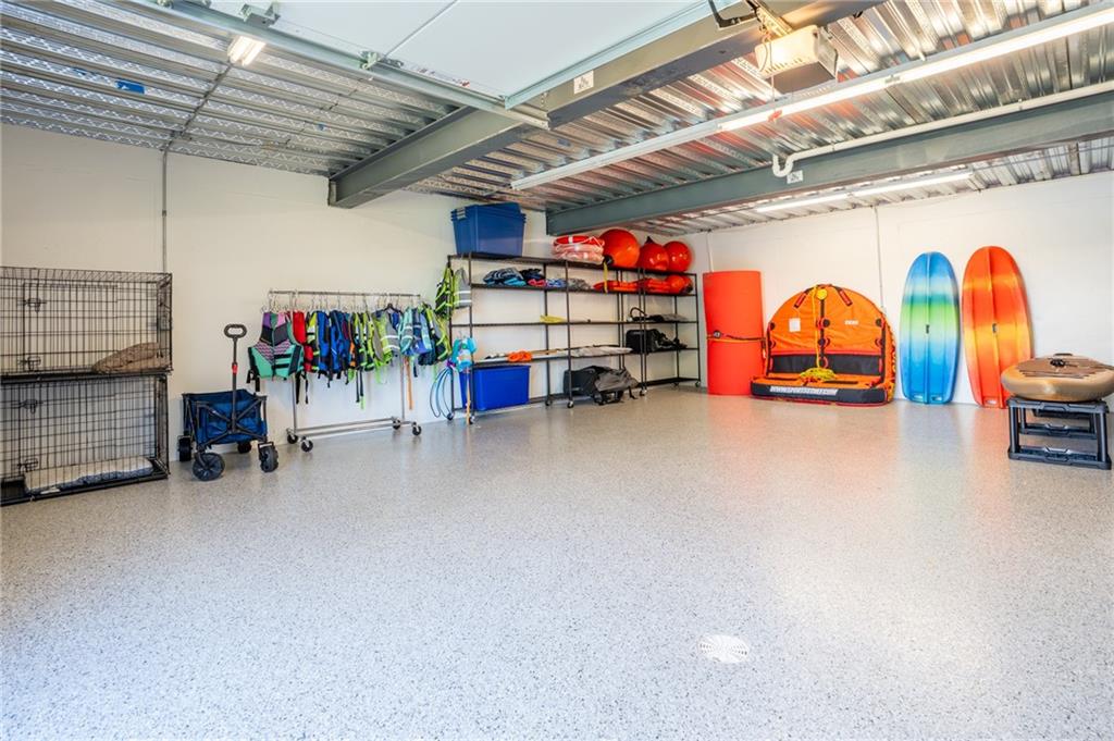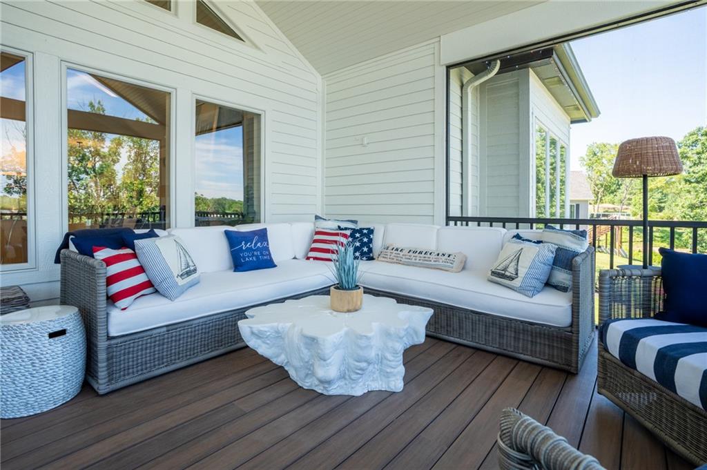 Lake Viking Waterfront Escape with Amazing Views and Modern Comforts! Here’s your chance to live the lake life in style! This standout Lake Viking waterfront home sits on two beautifully landscaped lots with over 250 feet of shoreline, deep water access, and stunning views in every direction. With 5 bedrooms, 3.5 baths, and plenty of room to relax or entertain, this property is ideal for full-time living or weekend getaways. A fully finished 3-level carriage house adds 470 sq ft of heated/cooled space with a full bath—perfect for guests, a home office, or hobby space. For storage and convenience, enjoy 7 garage bays and 2 in-home storm shelters. Inside, you’ll find vaulted ceilings, quarter-sawn oak floors, and a cozy gas fireplace. The open kitchen features new countertops, freshly painted cabinets, new kitchen appliances, a large island, and direct access to the screened-in porch—great for coffee or sunsets. The main-level primary suite includes a walk-in shower, soaking tub, and walk-in closet. Outdoor spaces include a covered lower patio, an infinity-style stone patio at the water’s edge, and a screened porch for year-round enjoyment. This home includes new interior/exterior paint, updated lighting, and custom stone landscaping making hanging out in the water a breeze! The 2-well dock features a lift and swim platform. A lake-fed 11-zone irrigation system keeps the lawn lush. Energy-efficient upgrades include Geothermal HVAC, on-demand hot water, Anderson thermal windows/doors, spider blown insulation, in ground propane tank, and a full security system. Includes 2 jet skis and a Polaris General—enjoy lake living at its best. Furnishings are negotiable!