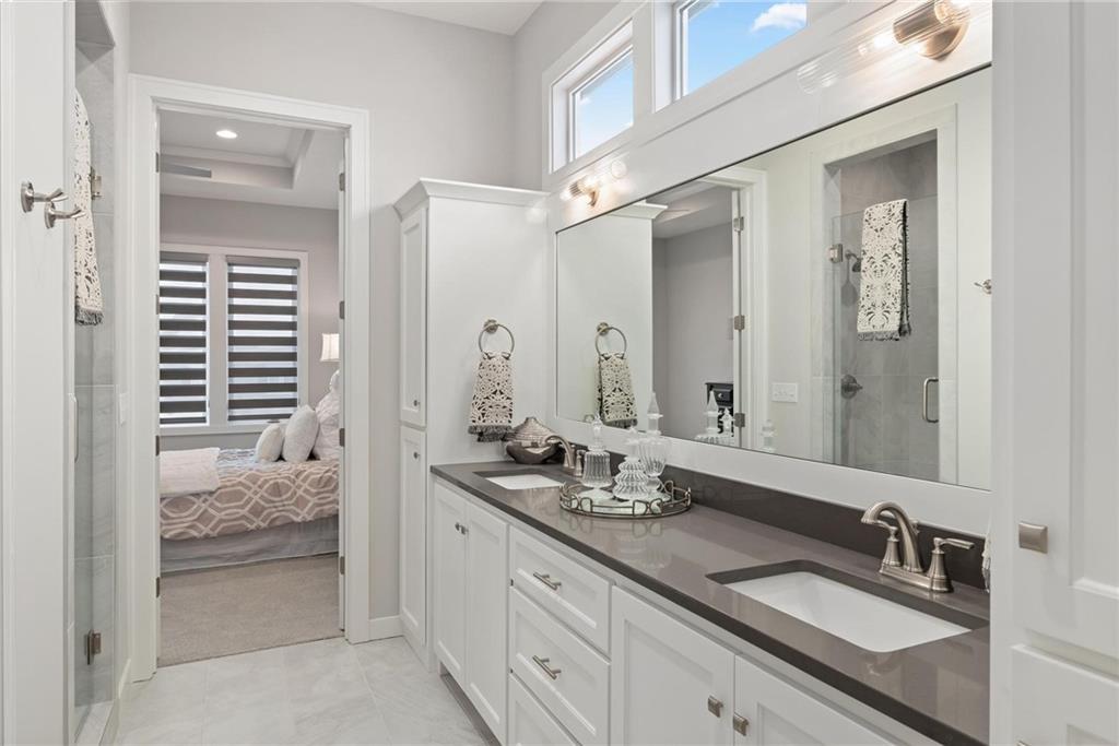 COMING SOON! Welcome to main level living with the stunning J.S. Robinson Fine Homes Avala floor plan. Conveniently located on a cul-de-sac Lot 76. This 4 bedroom, 3 bathroom, 3-car garage home features a spacious open floor plan, outstanding upgrades, a gourmet kitchen, covered deck overlooking the large yard with treed landscaping for privacy! The Kitchen offers custom cabinets with soft-close drawers AND doors, neutral quartz countertops, large island, walk-in pantry with a coffee station, and stainless GE appliances including a 5-burner gas cooktop . The Main floor provides a primary suite with an impressive bedroom and spa-like bathroom opening to a large walk-in closet and conveniently connecting to the laundry room. Hardwood floors flow throughout the main living areas which also offers large windows allowing an abundance of natural light, a second bedroom that is conveniently located near a 2nd full bathroom for guests or an office. The Lower level features a large family room with a wet bar and space for a full-size fridge plus two additional large bedrooms with walk-in closets and a 3rd full bathroom along with a Storm shelter. You'll also find plenty of storage plus a high efficiency furnace with humidifier. Walkout to your 20'x12' covered deck off the kitchen to relax or entertain. Low-maintenance living isn’t just a convenience—it’s a lifestyle, and our maintenance-provided package makes it effortless. lawn care, snow removal, irrigation maintenance, trash & recycling pickup for only $225/month! This home is located in Bristol Highlands Villas in Lenexa and only minutes away from Lenexa City Center, Lake Lenexa, Shawnee Mission Park and trails, shopping and an array of restaurants! This beautiful villa has it all. Villa homeowners will have the option to join the Bristol Highlands Community Clubhouse, Pool, & Sport Courts, coming soon. PHOTOS ARE NOT OF ACTUAL HOME, BUT IS THE AVALA FLOOR PLAN.