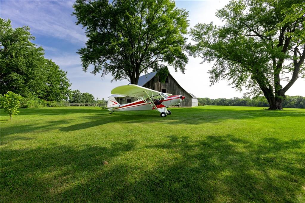 This rare property includes the original homestead on Lot 1, featuring a beautifully maintained historic home with original hardwoods, detailed trim, a large main-level living room, and an expanded primary suite with private second-story deck. Outside, enjoy mature landscaping, flat yard space, and a 150-year-old barn with steel roof, plus an insulated and heated airplane hangar with 40-ft door. Property sits adjacent to a 2,300-ft private grass airstrip designed for aviation enthusiasts. Lot 2 adds approx. 20 acres of open land, for a total of 25 +/- acres—ideal for expansion, recreation, or privacy. Truly a unique opportunity to own a piece of history with room to grow.