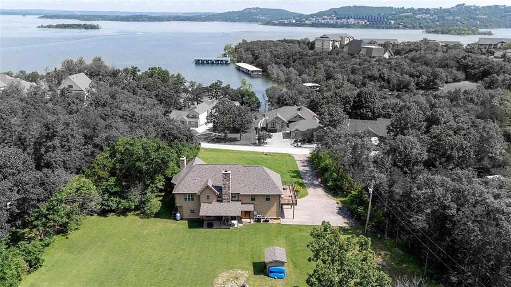 Lakeview Luxury Living Just Steps from Table Rock Lake. Experience the ultimate in lake lifestyle and year-round vacation living in this elegant and spacious two-story home, located directly across the street from the stunning Table Rock Lake. Designed with comfort, style, and entertainment in mind, this beautifully furnished residence offers the perfect retreat for families, guests, and outdoor enthusiasts alike. Step inside to a light-filled, open-concept layout featuring heated and cooled floors on the main level, a grand bay window that frames picturesque views, and soaring ceilings that enhance the sense of space. The gourmet kitchen is a chef’s dream, complete with a double oven, gas stove with an overhead water pot-filler, and a wine rack with built-in wine cooler—ideal for hosting unforgettable gatherings. Off the kitchen, a cozy bonus room with a fireplace provides a perfect spot to relax or entertain. Upstairs, you'll find a custom-built bar and entertainment area—separated from the bedrooms for added privacy—opening onto a deck where you can unwind and take in tranquil lake views. Zoned air conditioning ensures comfort throughout, and with all furnishings and kitchen appliances included—plus a washer and dryer on the second floor—this home is truly move-in ready. Located just minutes from the vibrant towns of Hollister and Branson, you'll have easy access to a wide variety of dining, shopping, and entertainment options. Outdoor activities abound, from boating and fishing to hiking and lakeside adventures—right outside your door. Whether you're looking for a full-time residence, vacation getaway, or a prime investment opportunity, this lakeside gem offers it all.