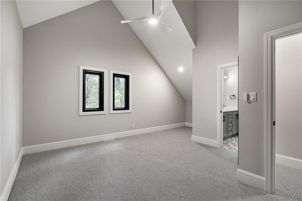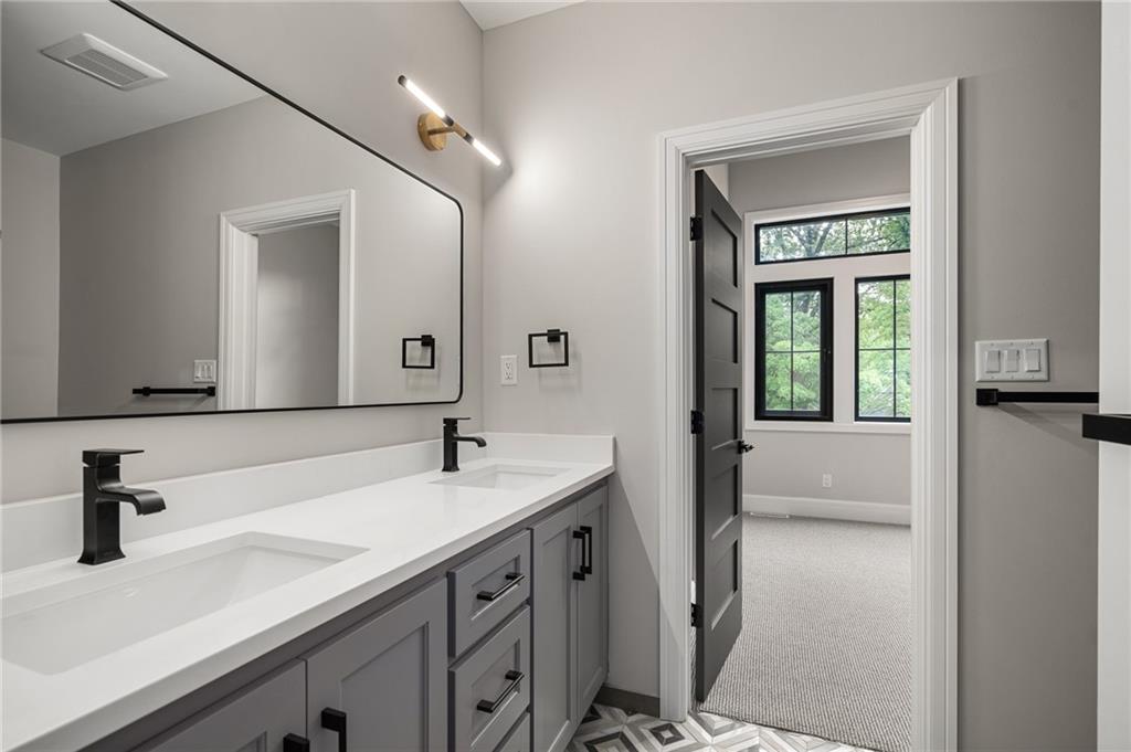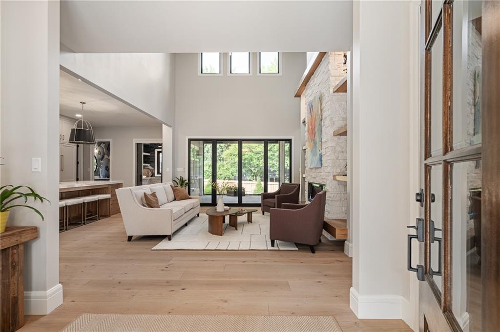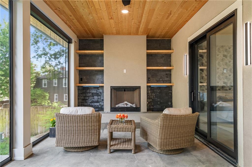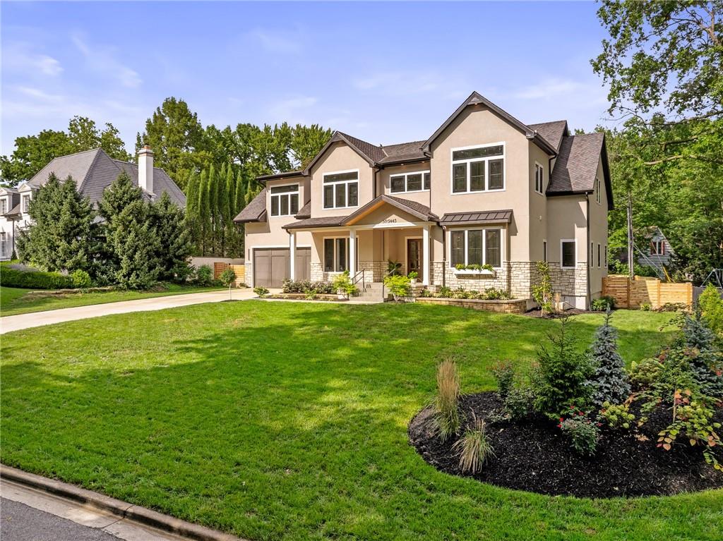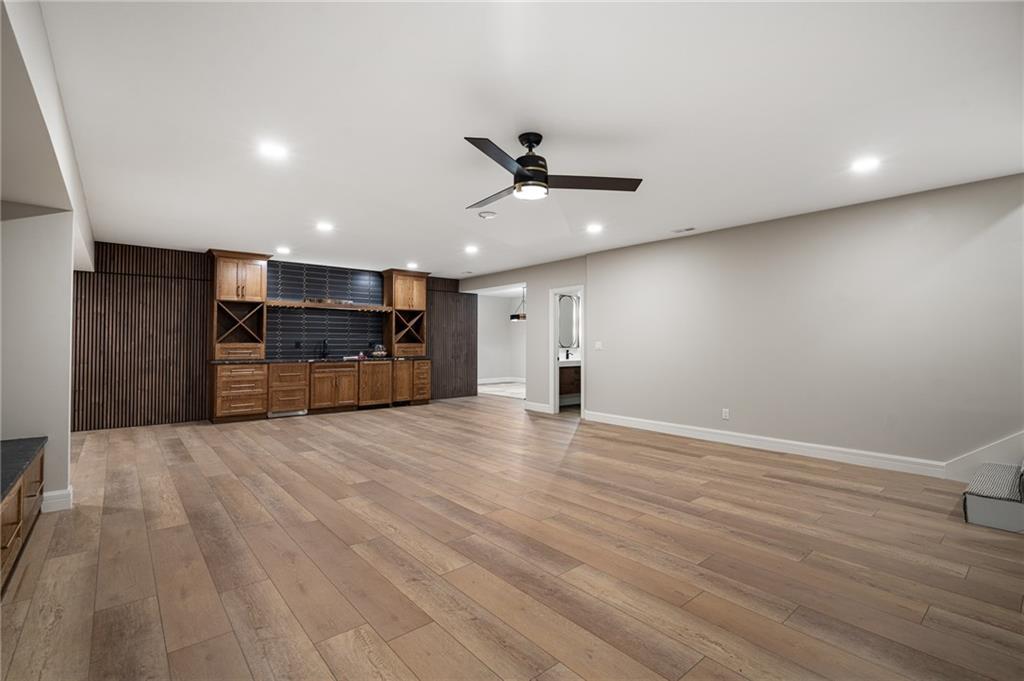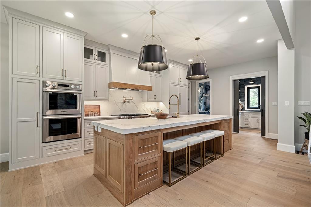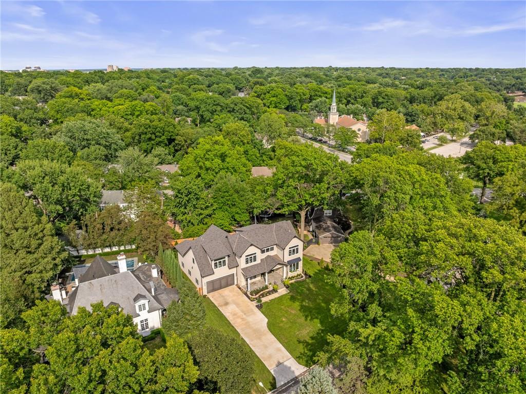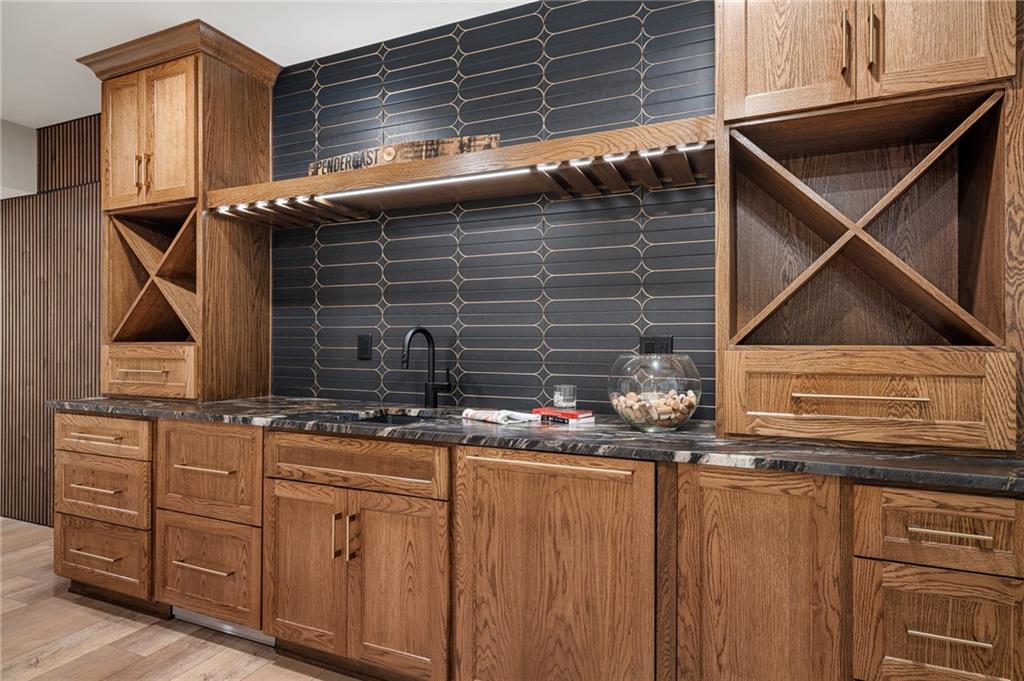 This 6-bed, 4 full plus 2 half bath, luxury home has exceptional quality and exclusive features. It seamlessly blends elegance, comfort, and intelligent design. From the stately front porch with self-watering planters, to the grand double door entrance, every detail reflects timeless sophistication. Inside, you will see the wide, open space with lofty ceilings, engineered white oak floors, and full glass, bifold, accordion doors that open to a covered lanai with a gas fireplace and twin waterfalls creating a seamless indoor-outdoor flow. Ceiling fans cool the warm days; lush landscaping is kept pristine by a full irrigation system. The magnificent Chefs kitchen has high quality, custom cabinetry, quartz counters, statement backsplash, hidden spice and utensil drawers, and a walk-in pantry with coffee bar and microwave. A stylish mudroom serves as a staging space for catered events. The kitchen flows into the dining area and vaulted living room, anchored by a dramatic stone, electric fireplace. A chic powder room adds guest comfort. The main level primary suite offers lanai access and a spa-like bath with jetted tub, walk-in shower, and dual quartz vanities—“hers” has custom storage for styling tools. Upstairs you are greeted by a spacious loft with a great view, three bedrooms, two baths, and a huge flex room that can be a home office, studio, or guest suite. You will fall in love with the whimsical and functional laundry room that gives a nod to Kansas City’s historic Nelly Don and the practicality of spacious storage, a convenient sink, and a huge island for laundry or crafts. The lower level is an entertainer’s dream! It is certainly a high-end mancave, wired for multiple TVs-no game left behind-plus wet bar, and two more bedrooms! It has a secret bonus room as well that can be a home theatre, golf simulator, or home gym. Thoughtfully designed and beautifully executed, this once-in-a-lifetime home delivers the ultimate in comfort, luxury, and lifestyle