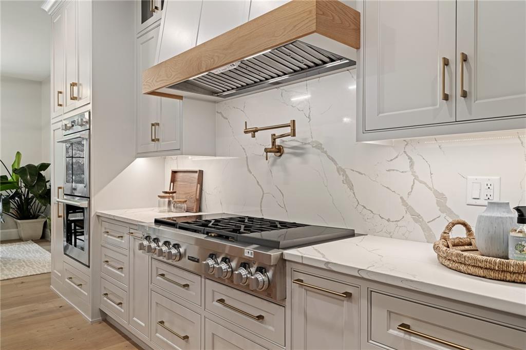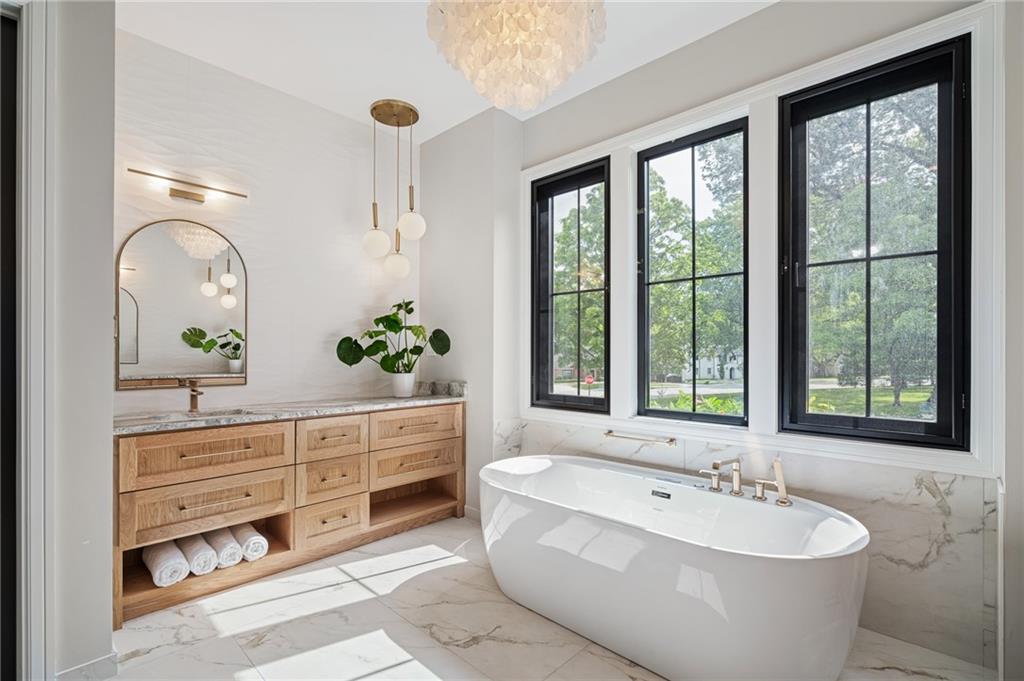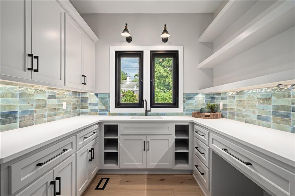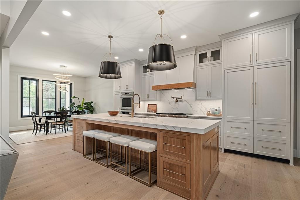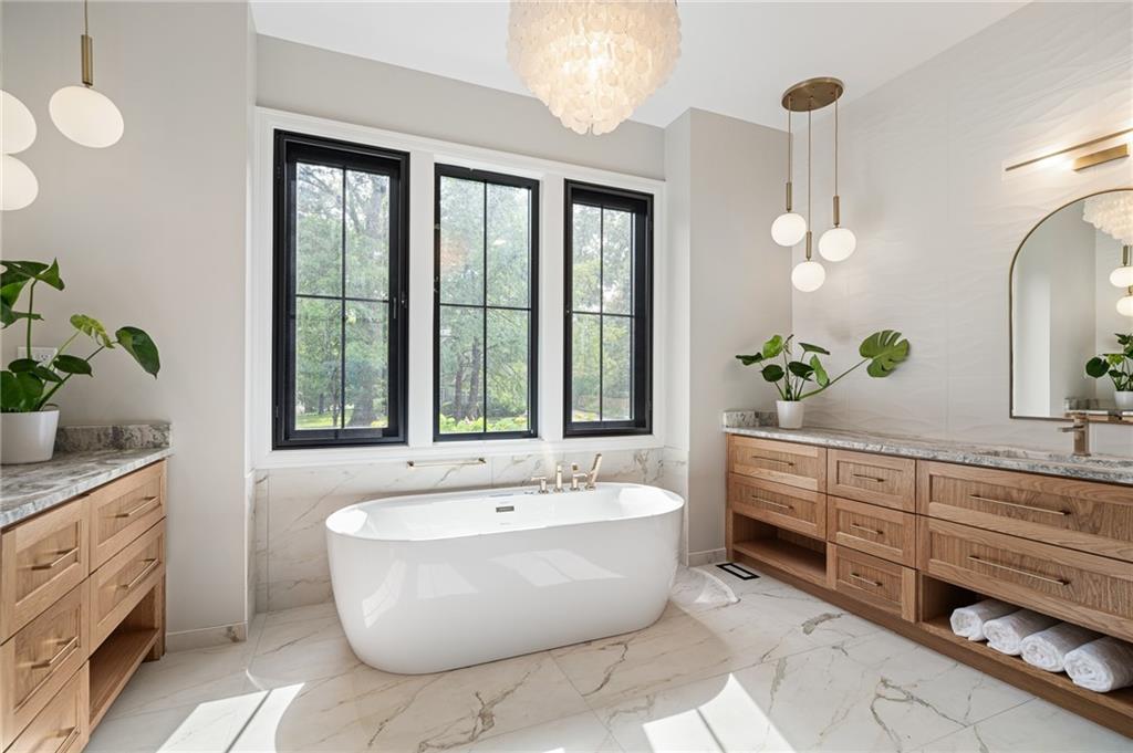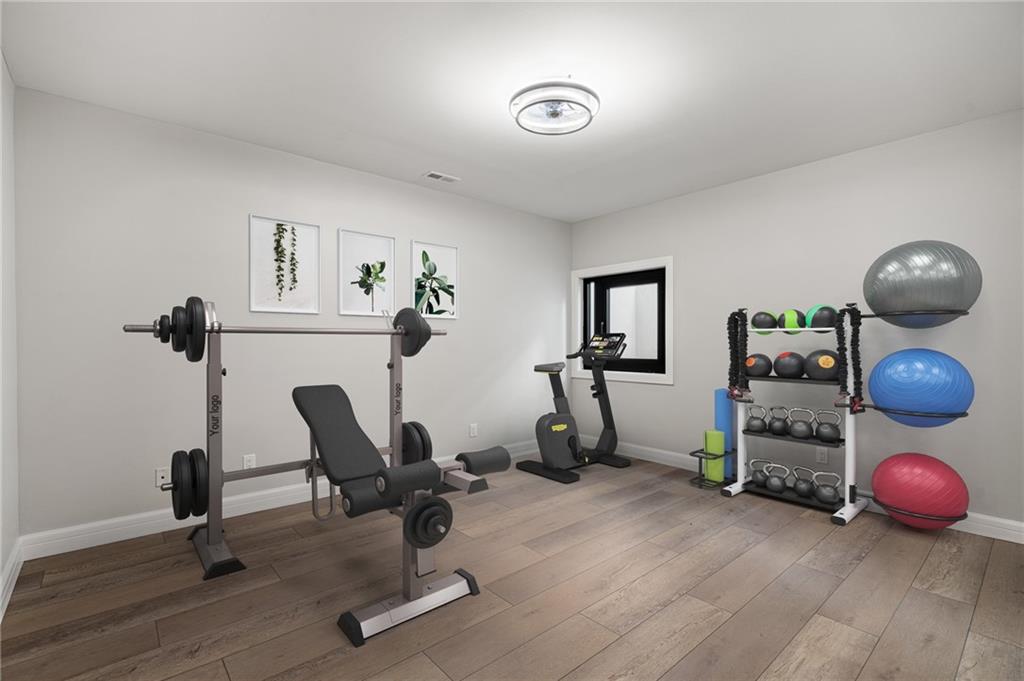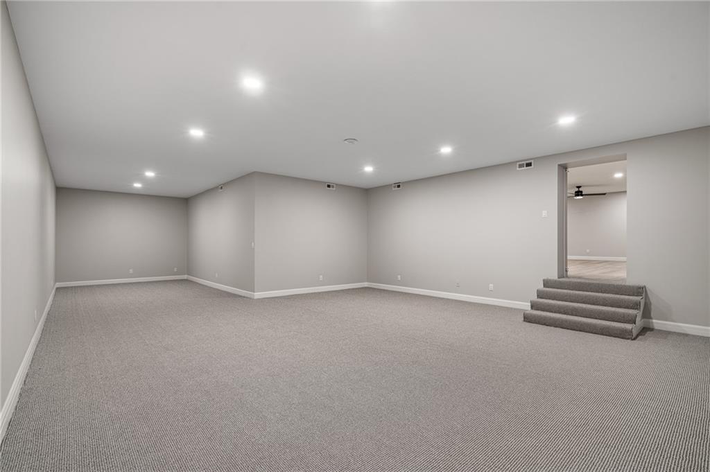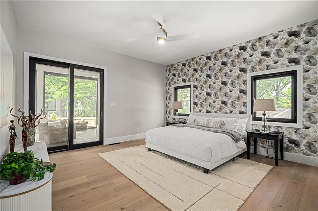 This 6-bed, 4 full plus 2 half bath, luxury home has exceptional quality and exclusive features. It seamlessly blends elegance, comfort, and intelligent design. From the stately front porch with self-watering planters, to the grand double door entrance, every detail reflects timeless sophistication. Inside, you will see the wide, open space with lofty ceilings, engineered white oak floors, and full glass, bifold, accordion doors that open to a covered lanai with a gas fireplace and twin waterfalls creating a seamless indoor-outdoor flow. Ceiling fans cool the warm days; lush landscaping is kept pristine by a full irrigation system. The magnificent Chefs kitchen has high quality, custom cabinetry, quartz counters, statement backsplash, hidden spice and utensil drawers, and a walk-in pantry with coffee bar and microwave. A stylish mudroom serves as a staging space for catered events. The kitchen flows into the dining area and vaulted living room, anchored by a dramatic stone, electric fireplace. A chic powder room adds guest comfort. The main level primary suite offers lanai access and a spa-like bath with jetted tub, walk-in shower, and dual quartz vanities—“hers” has custom storage for styling tools. Upstairs you are greeted by a spacious loft with a great view, three bedrooms, two baths, and a huge flex room that can be a home office, studio, or guest suite. You will fall in love with the whimsical and functional laundry room that gives a nod to Kansas City’s historic Nelly Don and the practicality of spacious storage, a convenient sink, and a huge island for laundry or crafts. The lower level is an entertainer’s dream! It is certainly a high-end mancave, wired for multiple TVs-no game left behind-plus wet bar, and two more bedrooms! It has a secret bonus room as well that can be a home theatre, golf simulator, or home gym. Thoughtfully designed and beautifully executed, this once-in-a-lifetime home delivers the ultimate in comfort, luxury, and lifestyle