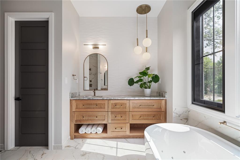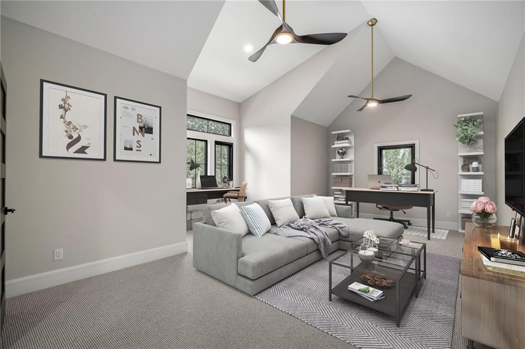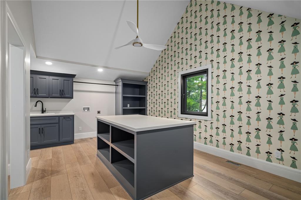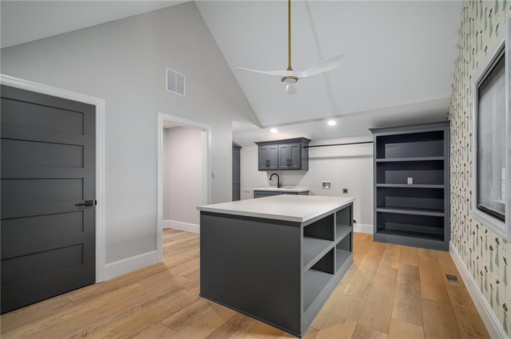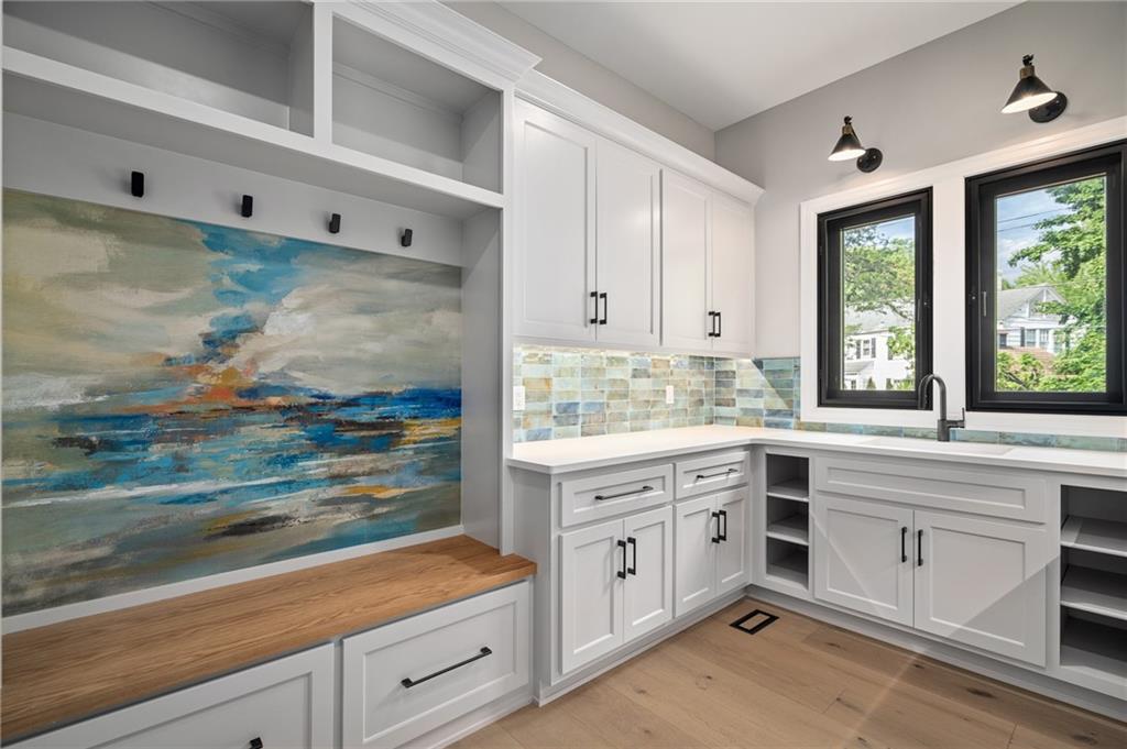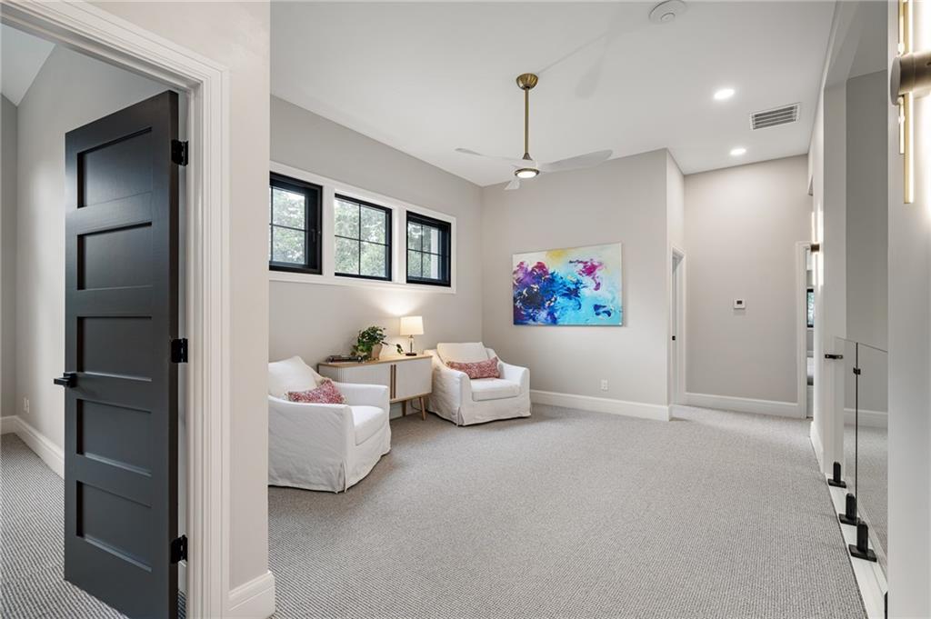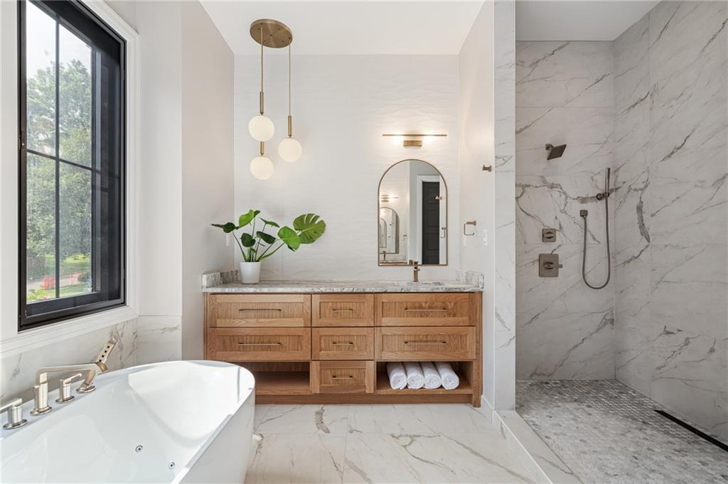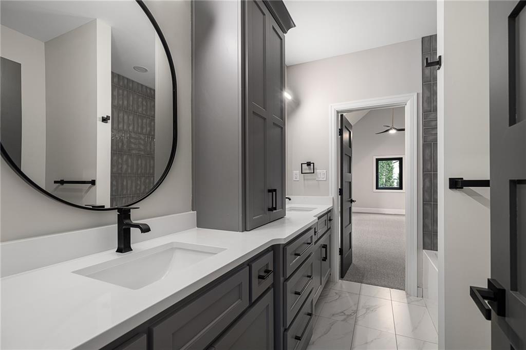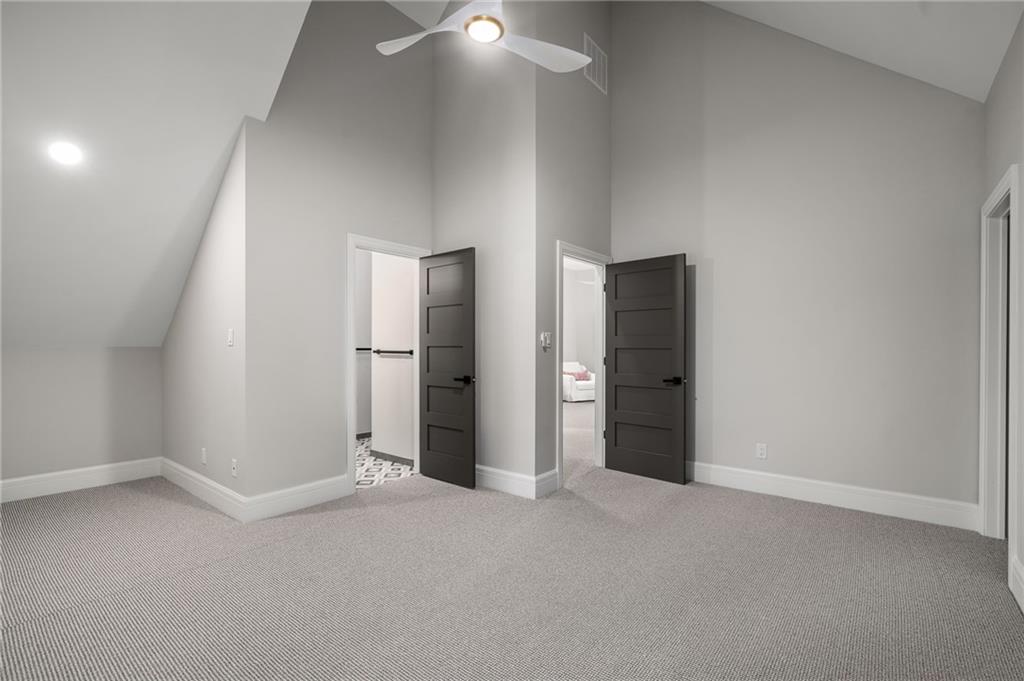 This 6-bed, 4 full plus 2 half bath, luxury home has exceptional quality and exclusive features. It seamlessly blends elegance, comfort, and intelligent design. From the stately front porch with self-watering planters, to the grand double door entrance, every detail reflects timeless sophistication. Inside, you will see the wide, open space with lofty ceilings, engineered white oak floors, and full glass, bifold, accordion doors that open to a covered lanai with a gas fireplace and twin waterfalls creating a seamless indoor-outdoor flow. Ceiling fans cool the warm days; lush landscaping is kept pristine by a full irrigation system. The magnificent Chefs kitchen has high quality, custom cabinetry, quartz counters, statement backsplash, hidden spice and utensil drawers, and a walk-in pantry with coffee bar and microwave. A stylish mudroom serves as a staging space for catered events. The kitchen flows into the dining area and vaulted living room, anchored by a dramatic stone, electric fireplace. A chic powder room adds guest comfort. The main level primary suite offers lanai access and a spa-like bath with jetted tub, walk-in shower, and dual quartz vanities—“hers” has custom storage for styling tools. Upstairs you are greeted by a spacious loft with a great view, three bedrooms, two baths, and a huge flex room that can be a home office, studio, or guest suite. You will fall in love with the whimsical and functional laundry room that gives a nod to Kansas City’s historic Nelly Don and the practicality of spacious storage, a convenient sink, and a huge island for laundry or crafts. The lower level is an entertainer’s dream! It is certainly a high-end mancave, wired for multiple TVs-no game left behind-plus wet bar, and two more bedrooms! It has a secret bonus room as well that can be a home theatre, golf simulator, or home gym. Thoughtfully designed and beautifully executed, this once-in-a-lifetime home delivers the ultimate in comfort, luxury, and lifestyle