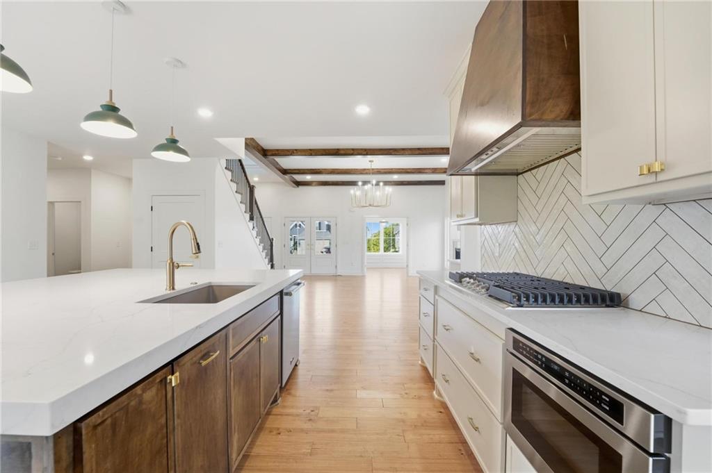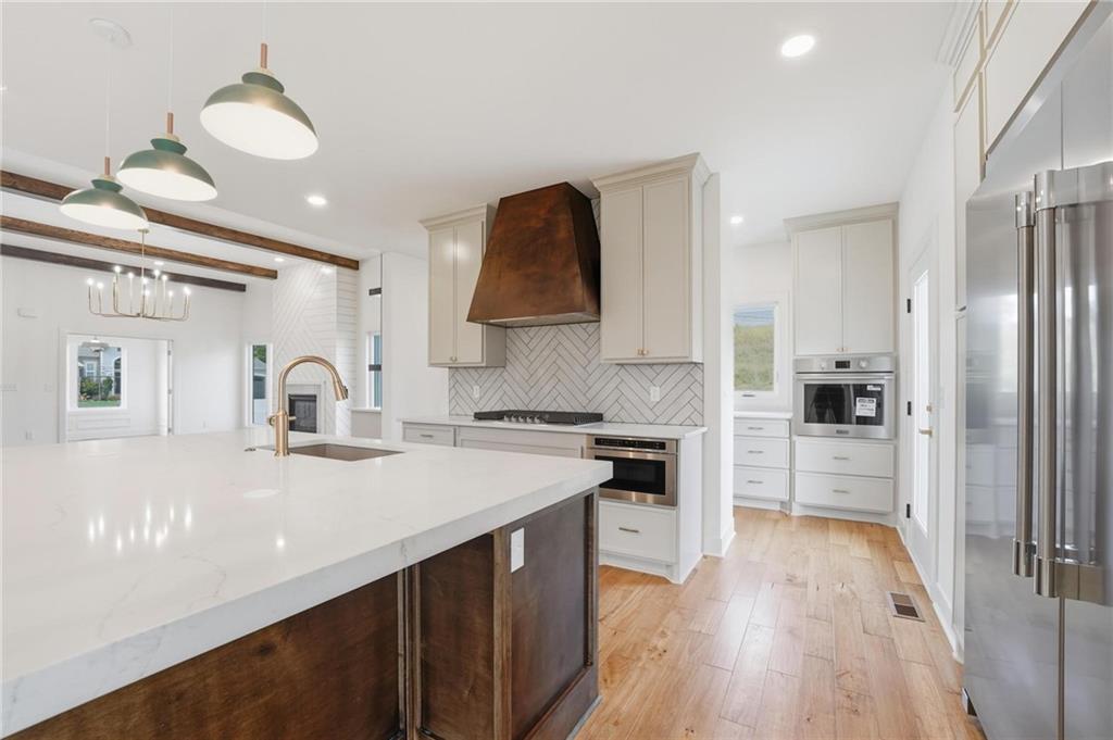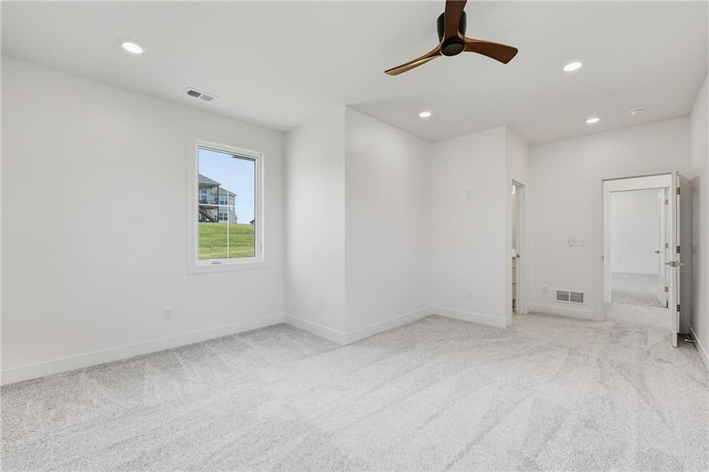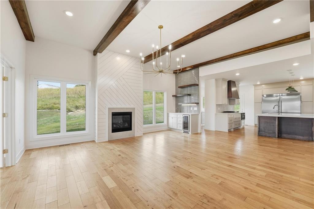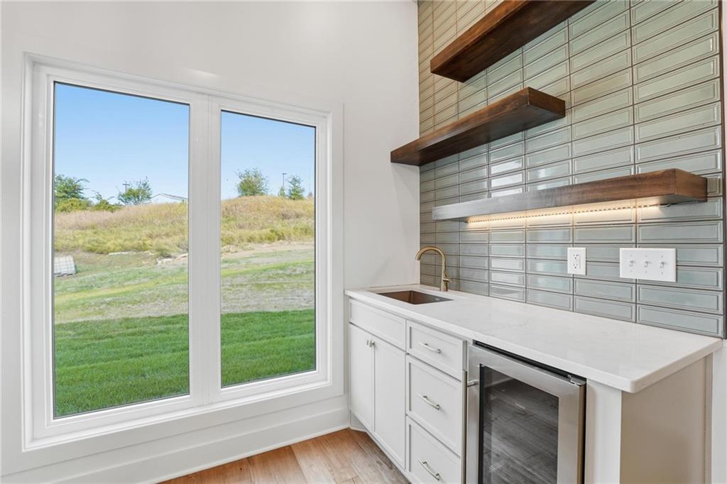 Luxurious Living at The National Golf Community! Discover exquisite finishes and modern design in this stunning home, featuring designer lighting, rich pecan flooring, large format tiles, high-end countertops, and beautifully stained cabinetry with exposed beams. Enjoy upgraded flooring throughout, dual-zone heating and cooling, and expansive outdoor spaces including a grill patio and covered patio on a generous lot at the end of a quiet cul-de-sac. The gourmet kitchen is a chef's delight, equipped with a 36" gas cooktop, a convenient drawer microwave, and as a special builder bonus, a full-sized refrigerator and freezer are included! The scullery enhances functionality with additional prep space, a full-sized sink, and open shelving for easy access to kitchen essentials. Retreat to the main-level master suite, featuring a spa-like bathroom with an oversized glass shower, a luxurious soaking tub, a dedicated vanity area, and stunning Taj Mahal Quartz countertops—an elegant touch typically reserved for custom homes. The master closet boasts floor-to-ceiling built-ins and seamlessly connects to the laundry room, which includes a sink and quartz countertop for added convenience. Upstairs, the spacious loft provides extra living space, while all bedrooms feature walk-in closets and private ensuite bathrooms—eliminating the need to share! The main level office is enhanced by elegant glass French doors, providing a sophisticated workspace. Entertain with ease at the wet bar, complete with a beverage fridge and stylish floating shelves. The expansive lower level includes a suspended garage and is situated on a cul-de-sac lot with adjacent land owned by the HOA, ensuring privacy and tranquility. Residents enjoy easy access to the subdivision pool and play area, all within the highly-rated Park Hill South High School. Become part of this vibrant golf community, with additional perks available through social and golf club memberships to The National.