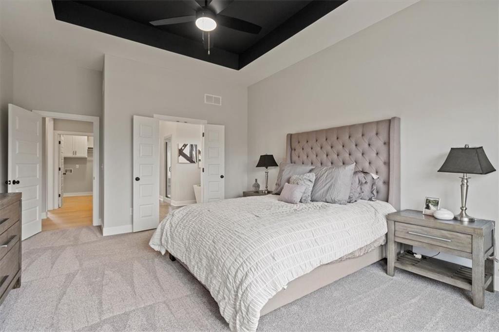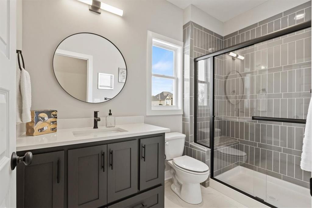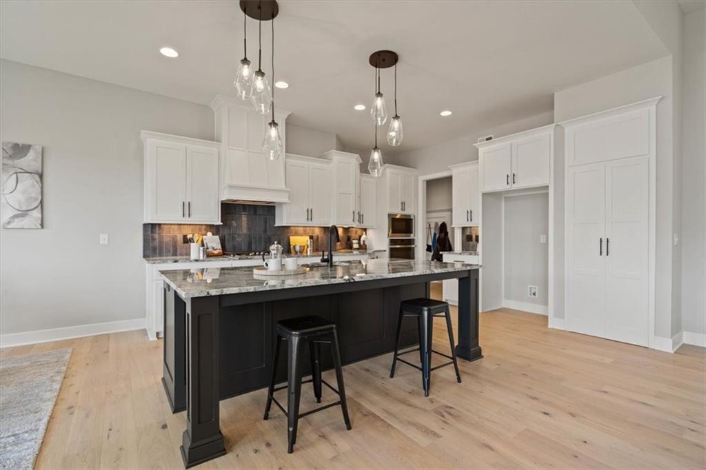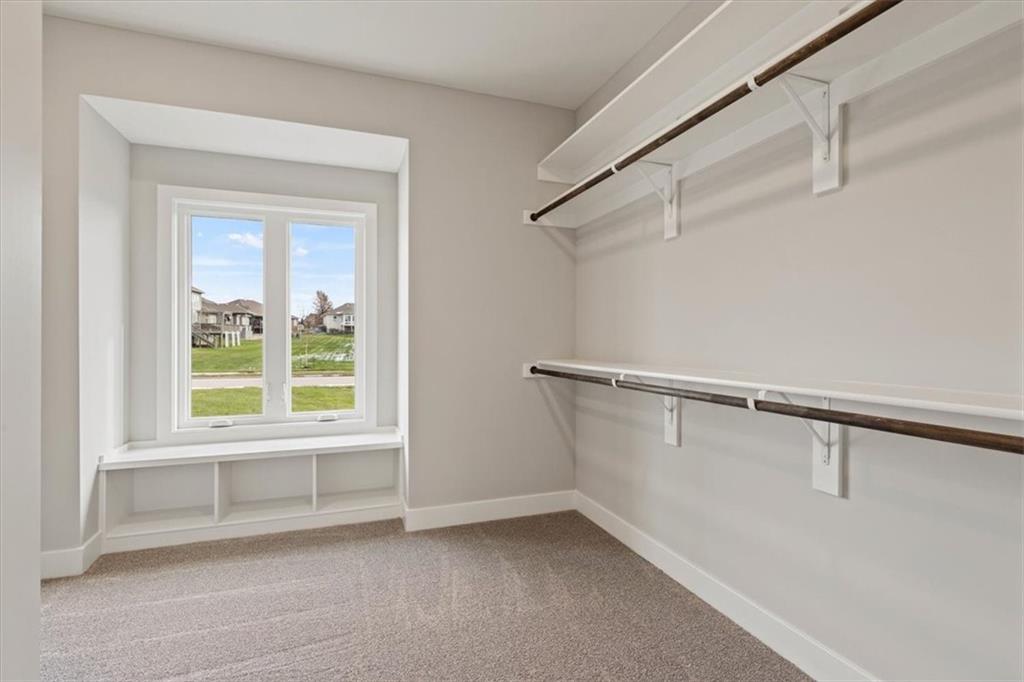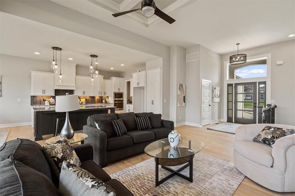Lot 142 "The Morgan" by New Mark Homes. Live in a Golf Course Community on a HUGE WALKOUT lot (.68 acres) backing to tree line - in Falcon Lakes! A rare find!! Is READY NOW!! Beautiful Reverse plan has an open entry to the Large Great Room with fireplace, full windows looking out to the trees and large yard. Opens to the Spacious Kitchen with Island, big walk in pantry. Dining Area walks out to the big center covered deck. Main Floor Primary Bedroom, walk in closet and Primary Bath suite with separate shower & standalone tub. Main floor laundry room just off the Primary Bedroom walk in closet. Second main floor Bedroom and Bath. Large Boot bench/drop zone with coat closet just off the 3 Car Garage/Kitchen. Huge lower level Family Room walks out to the patio and includes a bar area. Lower level Bedrooms 3 & 4 with third full Bathroom. Falcon Lakes is just 10 minutes from the Legends Dining, Shopping and Entertainment area and 30 minutes to the airport. Easy access to K-7 and all parts of the metro area! Acclaimed Basehor-Linwood schools!