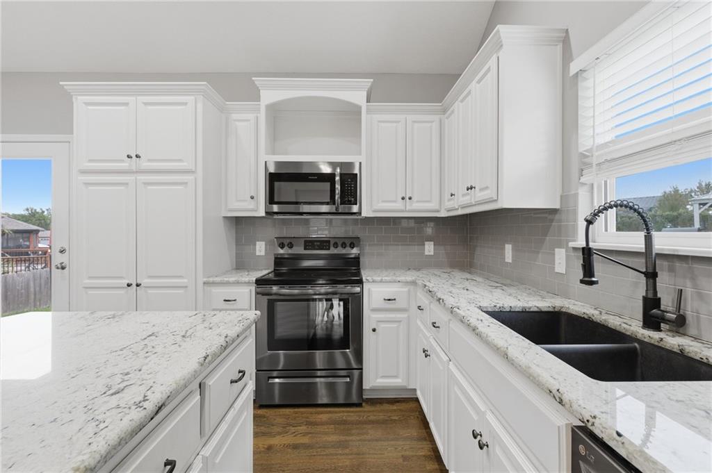 **NEW PRICE FOR THE NEW YEAR **Atrium Split-Level home that you can see the whole house from the main level. From the Kitchen you can look upstairs and see the bedrooms and then look down into the lower-level family room. This is ideal for entertaining or hanging out with your family. The main home features 3 bedrooms on upper level and 2.5 bathrooms. The Kitchen with a large Granite Island, Custom White Cabinetry, a nice Pantry, and a Brand-New High-end faucet. Fresh New Interior Paint throughout the home adds a bright, updated feel, while stunning hardwood floors flow seamlessly through the main living areas. The inviting family room features a cozy fireplace, ideal for relaxing evenings. Enjoy a spacious master suite featuring abundant natural light, a ceiling fan, and a luxurious ensuite complete with a relaxing jacuzzi tub, double vanity, separate shower, and a generous walk-in closet. Bathrooms and laundry room boast upgraded tile flooring, combining style and functionality. There is Additional storage space available in the sub-basement, or you could finish it for a fourth bedroom. Walk out to the covered deck with additional Privacy Shade that pulls down and fenced backyard. Home Sits on a Large Corner Lot/ Cul-de-sac with lots of front yard space. ******EXTRA FEATURE***** you won't want to miss is the SPACIOUS 3-BAY GARAGE is Ideal for a Car Workshop or Mancave. This unique setup with three Single Garage Doors offers greater flexibility and usable space than a traditional garage. Designed to stay cool and shaded throughout the day, the garage never receives direct sunlight- making it an Excellent environment for a Car Shop, Hobby space, or mancave. The third bay can accommodate a car lift, offering even more possibilities for customization. Home is MOVE-IN READY and you could be in for the New Year!