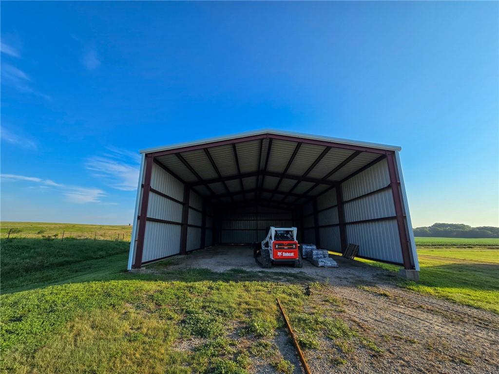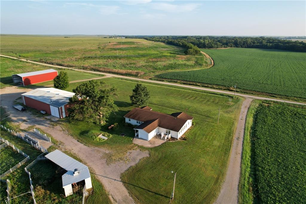 Located between the fields along the Neosho River and Flint Hills pasture, this 8.6+/- acre farmstead offers a rural lifestyle with a combination of living space, shop buildings, and fenced pasture with amazing Flint Hills views. The home is a 2,456 sq. ft. ranch-style layout with 4 bedrooms and 2 full bathrooms. It includes a high-efficiency heating and cooling system, a new water heater, and all major appliances: refrigerator, range/oven, dishwasher, washer, and dryer. A single-car attached garage adds secure parking and utility space. Outside, the property has been improved to support small-scale livestock operations or hobby farming. A 100' x 50' metal shop building includes a full concrete floor; the southern 25 feet is insulated and heated, offering excellent potential for a year-round workshop or climate-controlled storage. The second outbuilding is an 80' x 40' open-front pole barn with a gravel base—ideal for storing hay, trailers, or machinery. Livestock infrastructure includes a pipe corral system, circle tub, and hydraulic squeeze chute—efficient for handling cattle or other animals. The fencing is in place for approximately 5 acres of native grass pasture, providing turnout space for horses or room for a small cow-calf operation. Access is by gravel county road, and utilities are already established, making this property move-in ready and operational. The setting is private yet accessible, surrounded by open prairie and native grasslands characteristic of the eastern edge of the Flint Hills. It offers enough acreage to manage livestock without requiring extensive upkeep, making it an appealing choice for those wanting functionality without large-scale commitments. This farm provides an efficient mix of residential comfort and functional improvements for anyone seeking land with utility, storage, and the infrastructure to support livestock or hobby farming in east-central Kansas. Contact the listing agent today to schedule a showing.