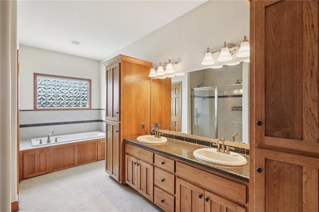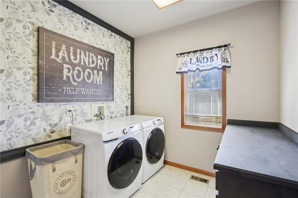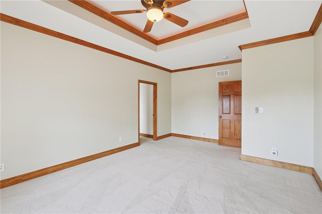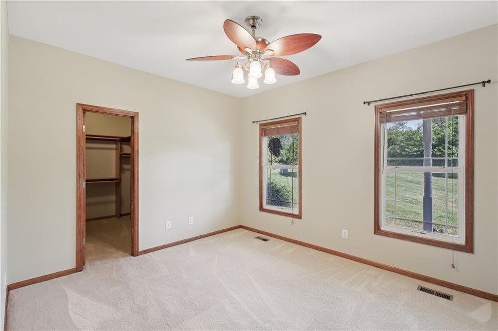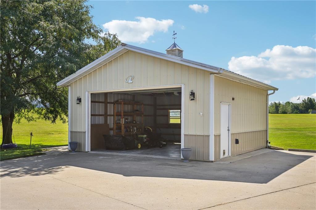 This stunning home is designed for both comfort and entertainment, set on a generous almost 3 acre lot that offers plenty of space for outdoor activities. As you enter the home, you're greeted by a spacious foyer that leads into the inviting living room area where you'll find a double sided fireplace and large windows that bathe the space in natural light and provide beautiful views of the backyard space. In the kitchen you will find ample counter space, an oversized island, and a walk in pantry. Adjacent to the kitchen is a spacious dining area which is where you will find a doorway to the large deck making it ideal for everyday meals and entertaining. The large deck extends the living space outdoors, offering a perfect spot for morning coffee, summer barbecues or peaceful evenings overlooking the pond. Each of the five bedrooms is generously sized and equipped with walk-in closets, providing plenty of storage and personal space. The primary suite is a true retreat with double doors leading onto the deck, complete with an en-suite bath featuring a jetted tub, separate shower, and dual vanities. The walkout basement is a true highlight with a large family room equipped with a pool table and a shuffleboard to supply extra entertainment for any occasion. A kitchenette adds convenience for snacks and refreshments. This area includes a patio with a hot tub where you can unwind after a long day. For those who need extra space for hobbies or storage, the home features 3 garage spaces, one with an EV charger and a shop with extra space for vehicles, tools, or even a workshop. The outdoor space is equally impressive, with fruit trees, and a large stocked pond, ideal for fishing or simply enjoying nature on the dock. The expansive yard offers plenty of room for gardening, outdoor gatherings, or recreational activities.