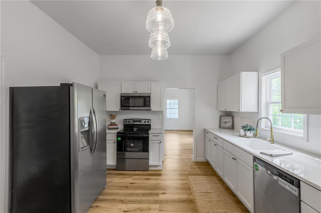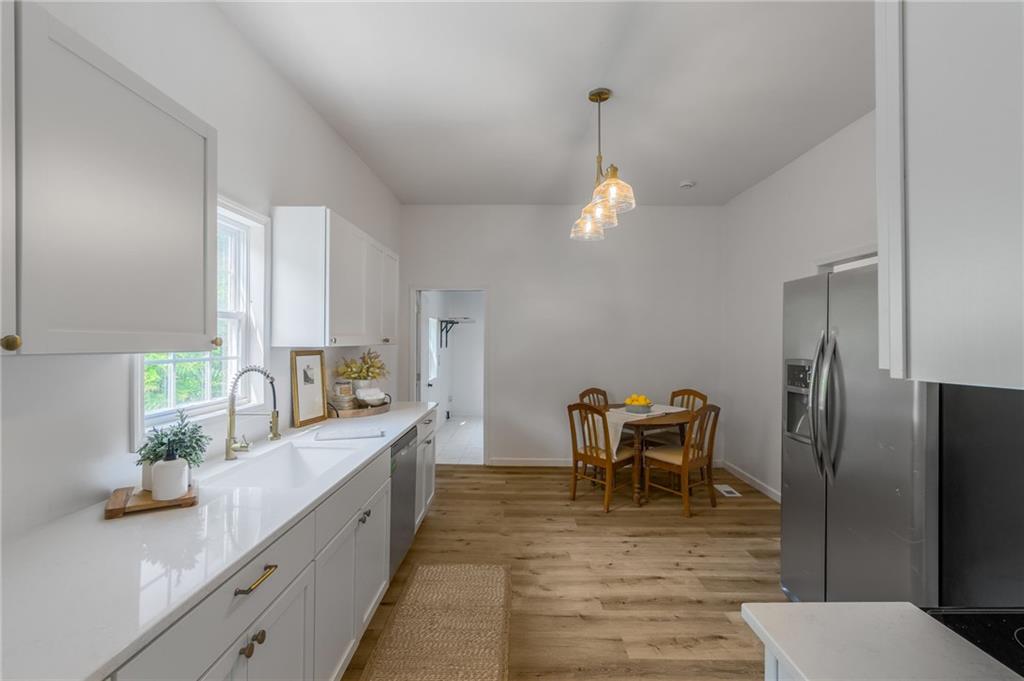 Totally renovated cute house with almost everything brand new, this 3-bedroom, 1-bath home is move-in ready. The main level features a spacious laundry/mud room and a beautiful kitchen with quartz countertops and plenty of space for a large eat-in area. Outside, you’ll find a large 2-car detached garage, off-street parking all on a large double lot
