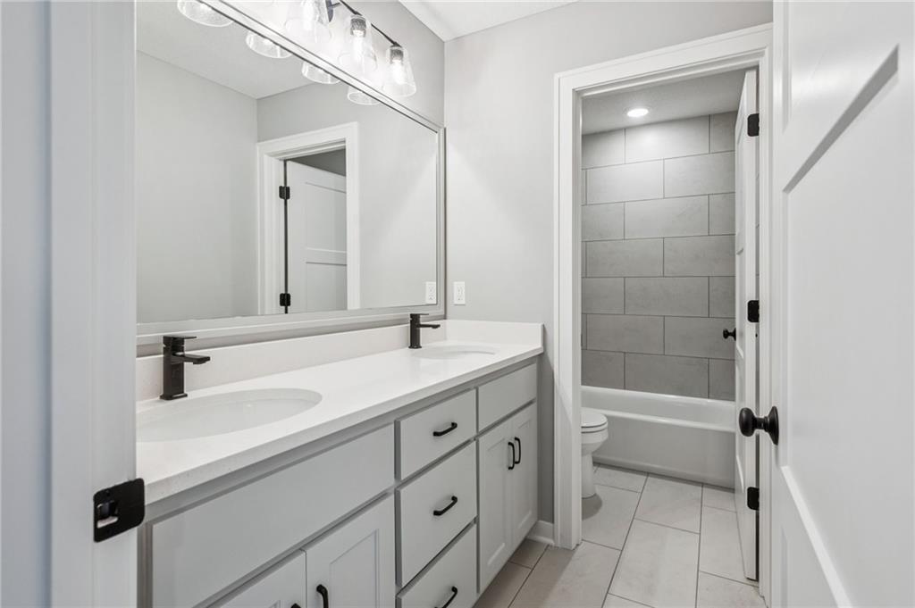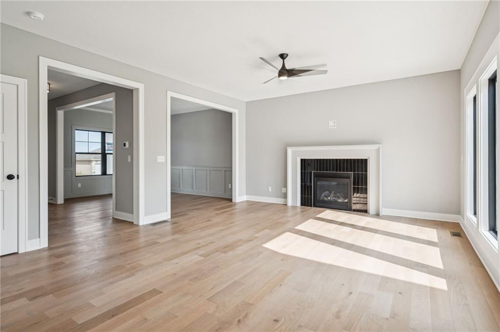 MOVE-IN READY! The Lincoln by Hearthside Homes – Lot 54, Homestead Hills Thoughtfully designed for modern living, The Lincoln combines flexibility, craftsmanship, and style. The main level features beautiful hardwood floors throughout and a versatile flex room—perfect for a home office, playroom, or quiet retreat. The spacious kitchen is the heart of the home, showcasing a large island, quartz countertops, custom cabinetry, and black windows that add a touch of modern elegance. An open layout connects seamlessly to the great room, creating the perfect setting for gatherings and everyday living. Upstairs, the primary suite delivers a true retreat. The spa-inspired bath includes a freestanding soaking tub, tiled shower with heavy-duty glass surround, dual vanities, and a huge walk-in closet that connects directly to the laundry room for added convenience. Three additional bedrooms and a full bath complete the upper level, providing space for family, guests, or hobbies. A nice-sized front porch and covered patio extend the living space outdoors, while the upgraded I-joist floor system ensures quiet, solid floors throughout the home. Every Hearthside home exceeds industry standards with a 12-month builder warranty, independent third-party inspections, a verified video sewer line scope, and professional HVAC duct cleaning—ensuring your new home is delivered in pristine, top-tier condition. Located in Homestead Hills within the Liberty School District, offering access to a pool,