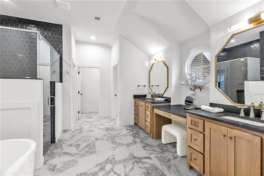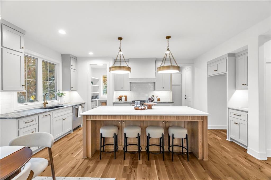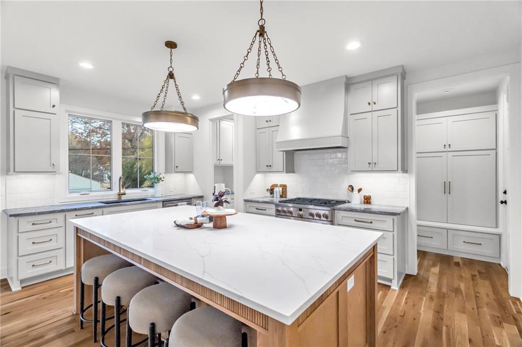 New Construction in prime location ready now! This home is fully finished as of 11/17/25. Located just minutes from Prairie Village Shops, the Plaza, Johnson Drive Shops and within walking distance to multiple parks, Highlands Elementary and Indian Hills Middle School. This home features a flexible floor plan with open-concept kitchen, dining, and living areas, all with white oak hardwood flooring on the main level. The kitchen includes a large window over the sink overlooking the backyard, an oversized island, a spacious walk-in pantry with a custom coffee station, and a 36" gas range with a designer hood. Just off the garage entry, a mudroom with a built-in drop zone adds everyday convenience. The dining area boasts a 9' sliding glass door that opens to a covered deck—perfect for entertaining. Upstairs, the oversized primary suite includes a luxurious bathroom and a large walk-in closet with custom shelving. The laundry room connects directly to the primary closet and is also accessible from the hallway—an ideal layout for busy households. The finished lower level offers a guest bedroom with a full bath, a large living area, a flex space perfect for a home office or gym and an optional bar area. Exterior highlights include a side-entry garage that enhances curb appeal, full acrylic stucco with black standing seam metal roof accents and a custom cast stone arch surrounding the covered front porch. High-end finishes throughout. Soft-close cabinet drawers, 8' doors on the main level, solid core doors throughout, inset hardwood floor vents, hardwood stair treads to the second floor, LVP flooring throughout the lower level, custom fireplace surround, sprinkler system, new fence, battery backup sump pump and more.