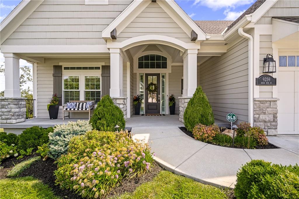 From K-10 take the Woodland Exit and go North to Prairie Star Parkway. Go West on Prairie Star Parkway (left) to Lone Elm. Right (North) on Lone Elm into Timber Rock subdivision. Turn right on Brownridge Street and take to Deer Run Street. Turn left onto Deer Run Street. Home is on the right in the cul de sac. 9259 Deer Run Street.