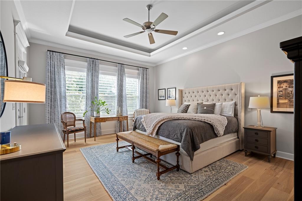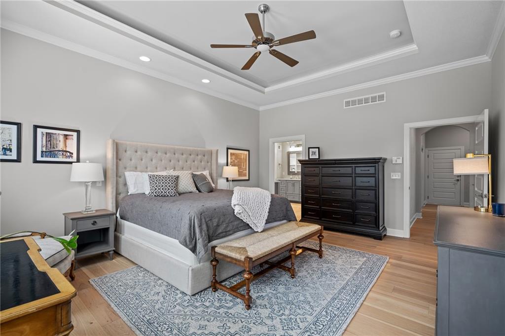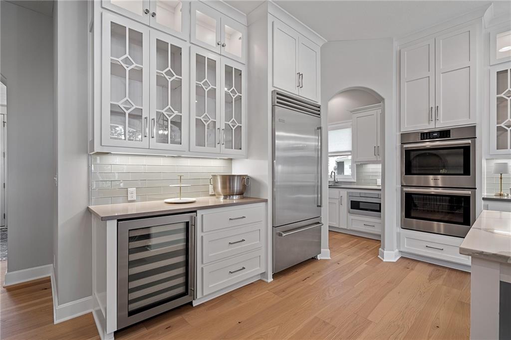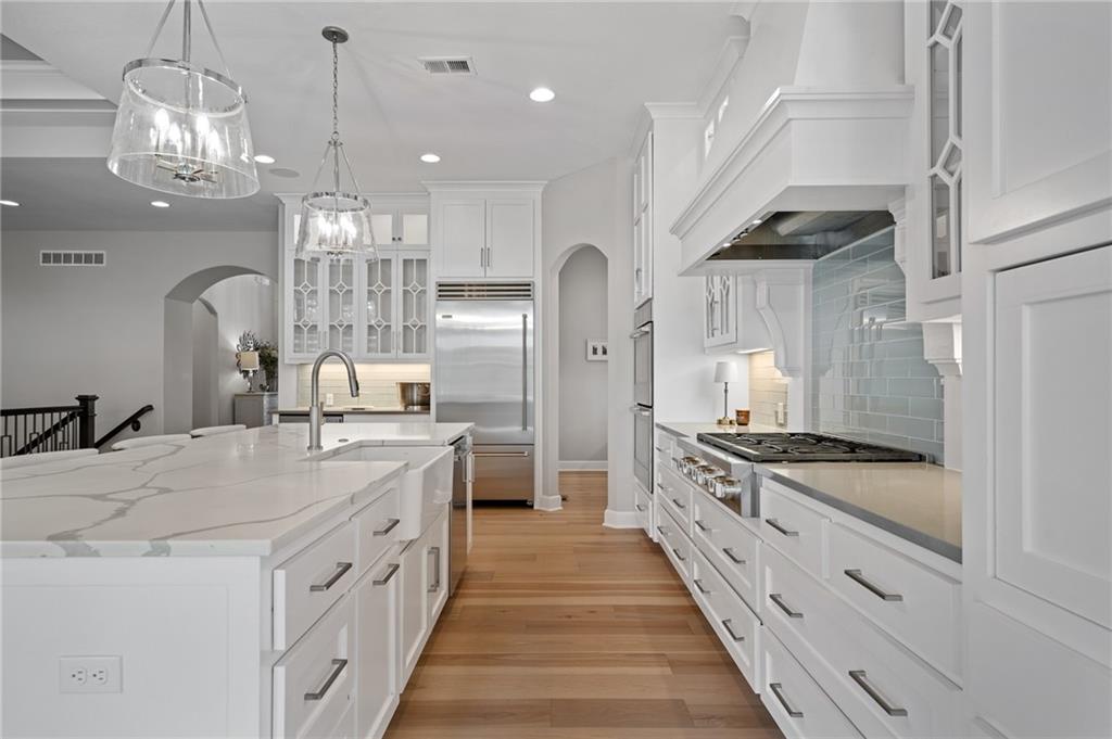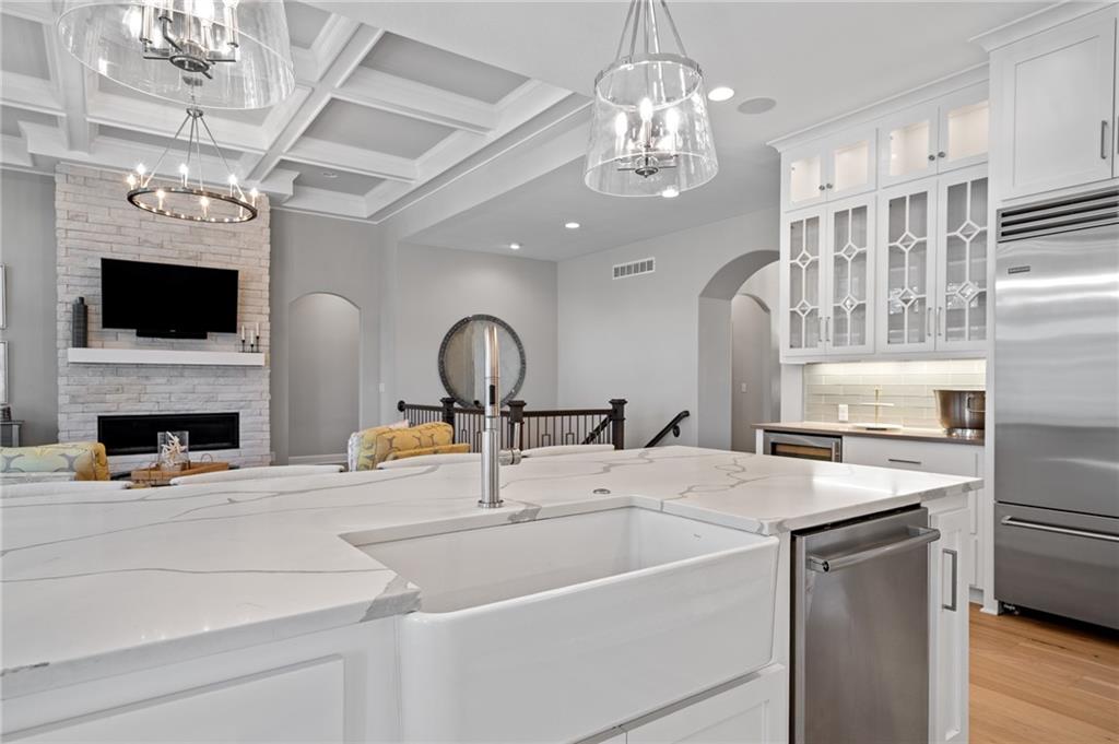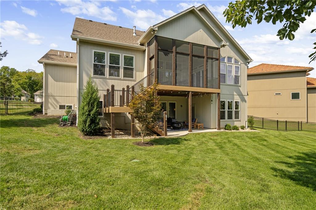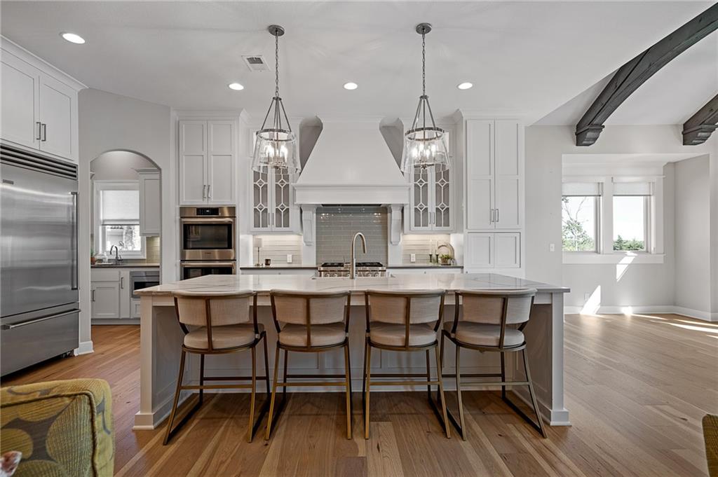 Stunning Zero-Entry Home in Timber Rock! Owner/agent Beautiful 4-bedroom, 3.5-bath home with 4,004 sq. ft. of living space, perfectly situated on 0.47 acre cul-de-sac in the highly sought-after Timber Rock neighborhood of Lenexa. This zero-entry home offers true main-level living with no steps from the garage or front entry, wider hallways and archways, and a zero-entry shower in the primary suite. The open main level features new hardwood floors throughout (excluding the office/front bedroom and primary bath) and an abundance of natural light from upgraded Anderson windows. The chef’s kitchen is a dream with premier appliances: Wolf range top and vent hood, built-in dual-compressor refrigerator/freezer, Bosch dishwasher, double ovens, farm sink with new pull-down sprayer faucet, a prep kitchen, huge pantry, wine cooler, and a drawer-style microwave (1 year old). Retreat to the main-floor primary suite, complete with access to the covered deck, heated bathroom floors, dual vanities, Jacuzzi soaking tub with custom built-ins, and an oversized walk-in closet. Enjoy year-round comfort with upgraded insulation, dual-zoned variable HVAC, and 9’ ceilings on the lower level. Entertain with ease on the screened-in deck overlooking the fenced backyard or in the expansive walkout lower level with patio access to the large, fenced backyard with mature trees. Additional highlights include: Laundry on main level Generous closet space throughout Sonos surround sound system with in-ceiling speakers CAT6 wiring with redundant runs on the main level Security system Oversized rooms and abundant storage This home offers the perfect blend of luxury, comfort, and thoughtful design on nearly a half-acre lot in one of Lenexa’s premier neighborhoods. Explore neighborhood trails and nearby Blackhoof Park and Lenexa Lake!