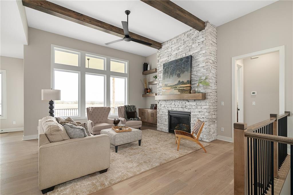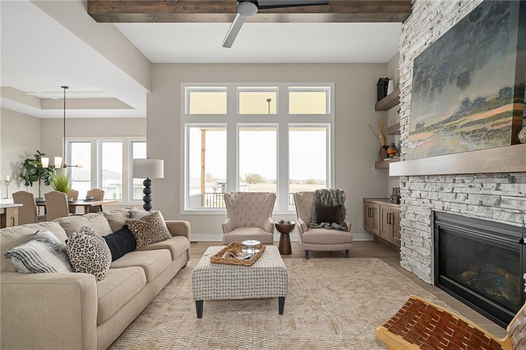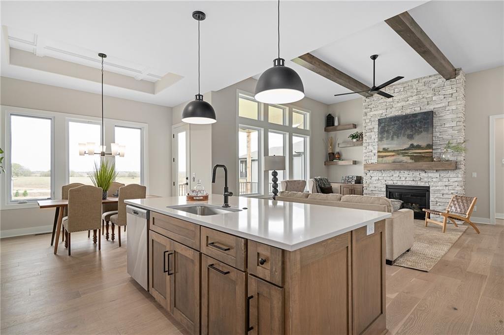 Pauli Homes brings their popular Sicilian 2 plan to Johnson Counties newest maintenance provided community, Prairie Canyon! Conveniently located just west of K-7 off of College Blvd.! This fabulous Rev. 1.5 sty. is on a cul-de-sac, perched on a ridge, backing east with extended beautiful views! Open concept: Great rm / Dining / Kitchen w/spacious island, large walk-in pantry, FP & includes a versatile 1st flr. guest rm. or Den. L-shaped lower-level design allows for plenty of recreation space & family/media area plus 2 bedrooms w/a share bath. Exceptional quality & value you've come to expect from from Pauli Homes in a signature Prime Development Co. Community!