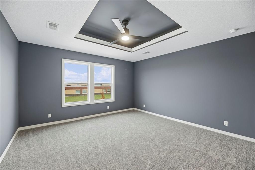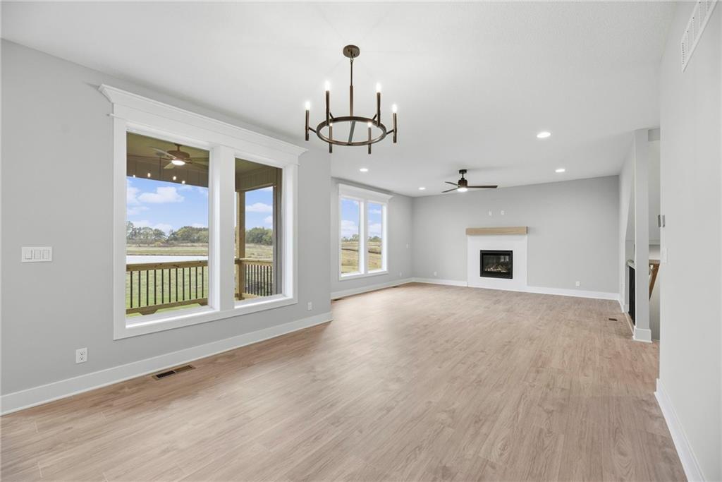 * Ask about the Builder 10K Holiday Promo* Introducing the striking "Miley I" by Lamendola Custom Homes on Lot 2! This exceptional two-story home combines luxury and functionality on a stunning lot that you won’t want to miss. Positioned perfectly, this home backs onto a serene lake with a picturesque fountain view, surrounded by mature trees that enhance its natural beauty. Enjoy your morning coffee on the covered deck or unwind in the evening; the breathtaking views will immerse you in tranquility and a connection to nature. On the main level, an open-concept layout featuring a gourmet kitchen with an oversized island and a walk-in pantry that effortlessly flows into the dining and living areas. A dedicated front office provides an ideal workspace at the front of the house, while a drop zone adjacent to the spacious three-car garage, 8-foot doors, adds unmatched convenience. A half bath completes this thoughtfully designed space. Ascend to the upper level, where you'll find the impressive primary suite, complete with a spa-inspired bath featuring dual vanities, a walk-in shower, and ample walk-in closets. The spacious laundry room is conveniently located next to the primary bedroom. This level also boasts three additional bedrooms and two full bathrooms, including a secondary bedroom with its own private en-suite—perfect for guests or providing that extra touch of privacy. The daylight basement is designed for potential, featuring above-grade egress windows, ready for a future bedroom, and is stubbed for a full bathroom, allowing for expansion as needed. Home is Ready NOW. *Note: Features, sizes, square footage, and taxes are estimated.